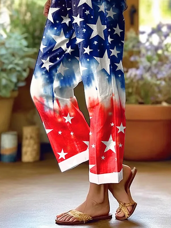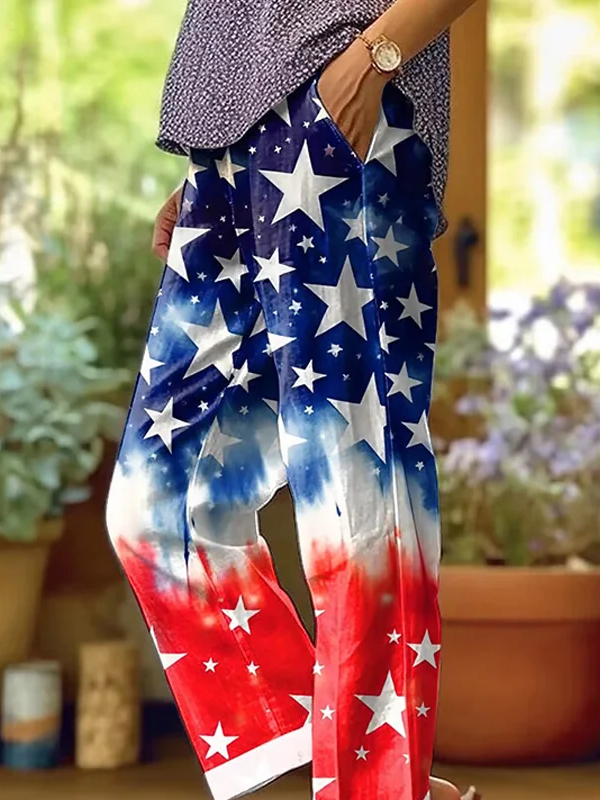 Women's H-Line Baggy Pants Daily Going Out Pants As Picture Casual Printing Independence Day (Flag) Spring/Fall Pants