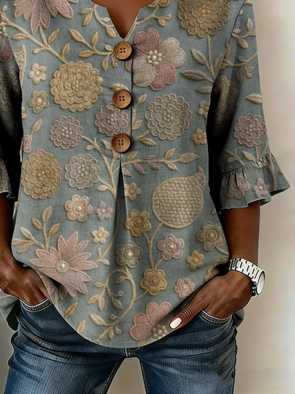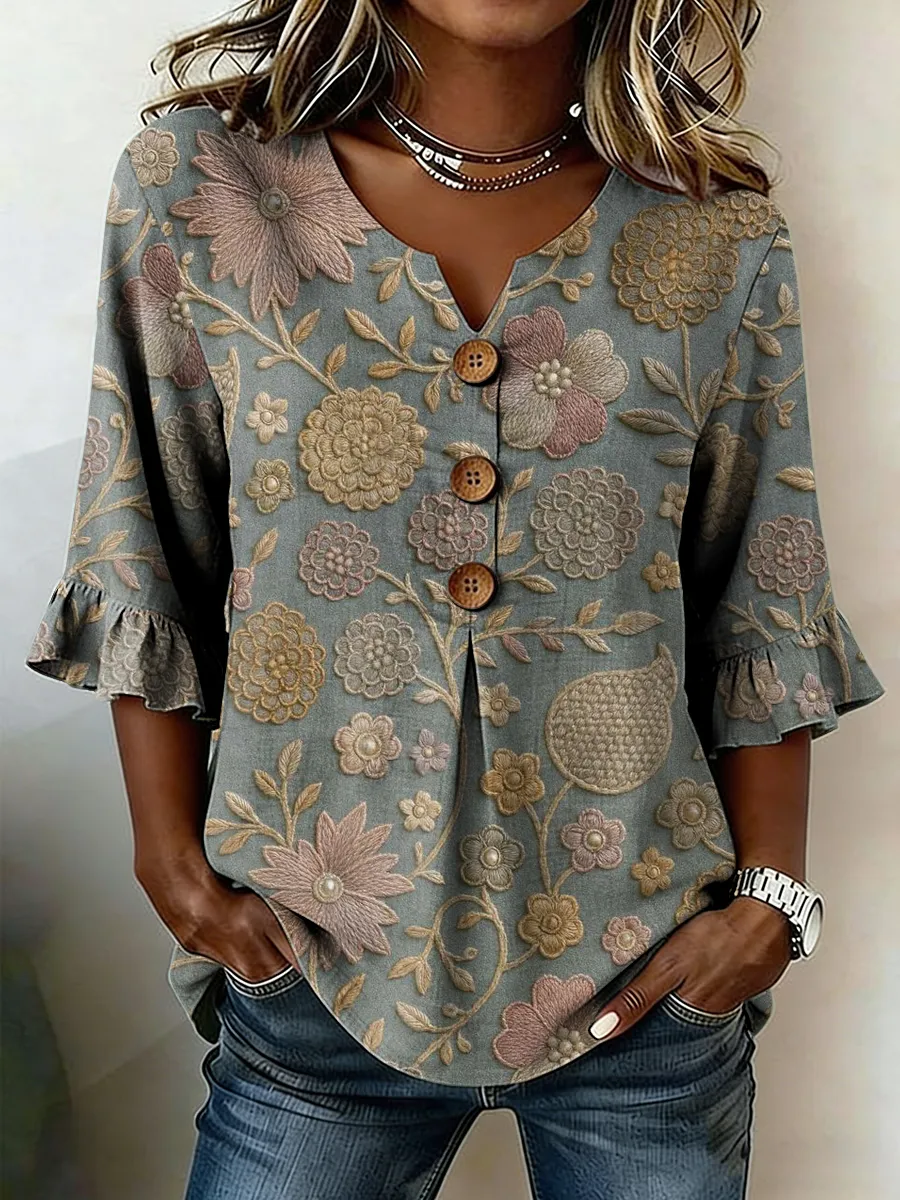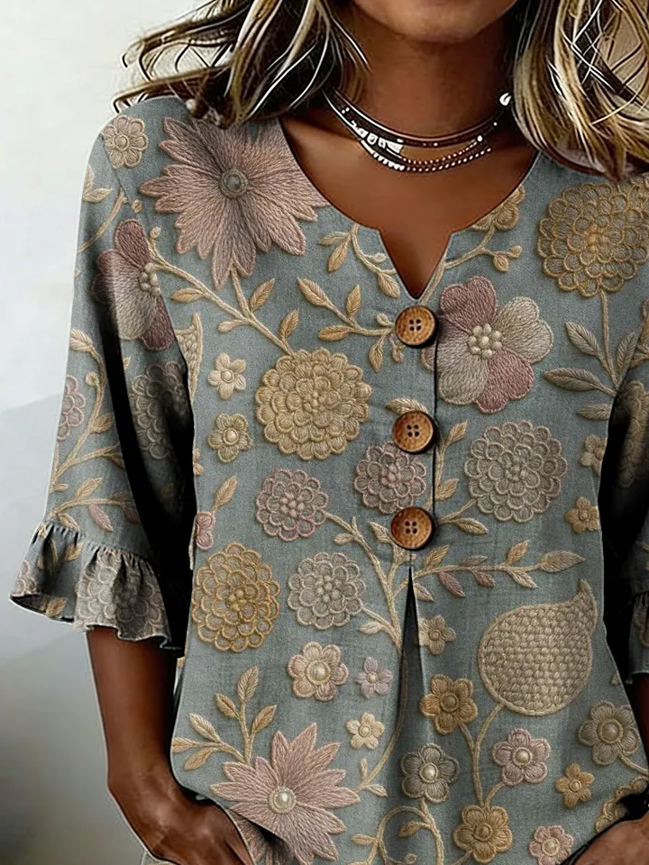 Women's Half Sleeve Blouse Summer As Picture Floral Printing V Neck Daily Going Out Vintage Top