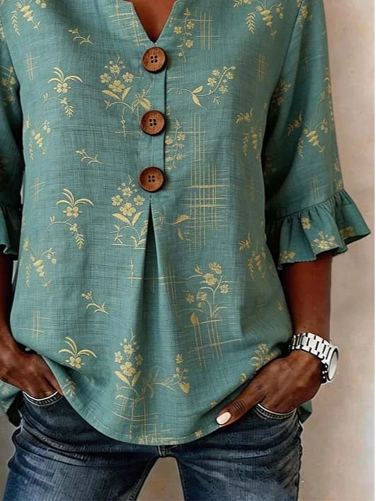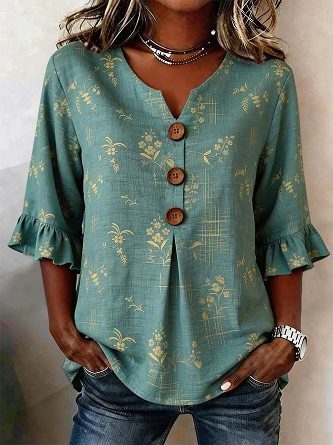 Women's Half Sleeve Blouse Summer Green Floral Printing V Neck Daily Going Out Vintage Top