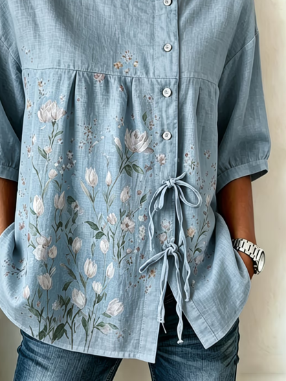 Women's Half Sleeve Shirt Summer Blue Floral Crew Neck Daily Going Out Vintage Top