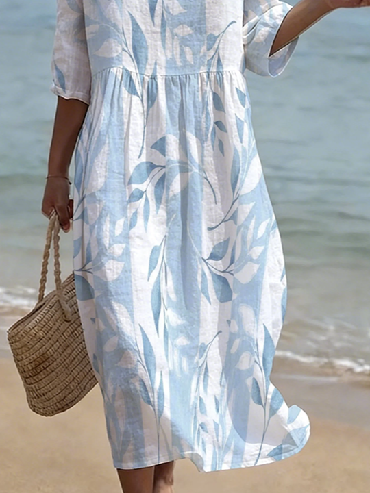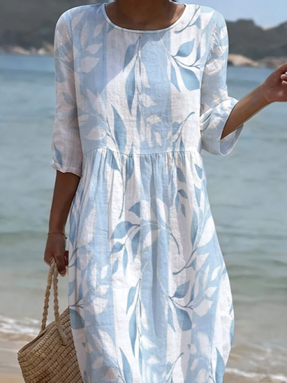 Women's Half Sleeve Summer Blue Floral Printing Crew Neck Daily Going Out Casual Maxi H-Line Dress