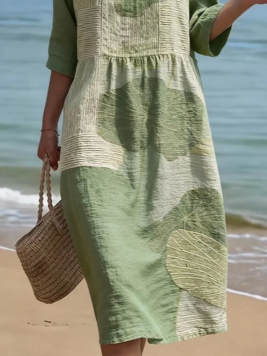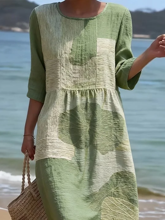 Women's Half Sleeve Summer Green Abstract Printing Crew Neck Daily Going Out Casual Maxi H-Line Dress