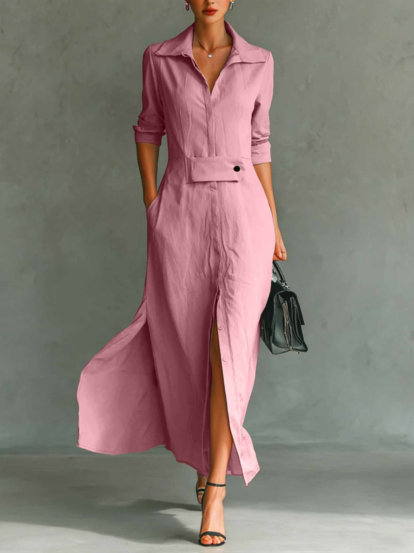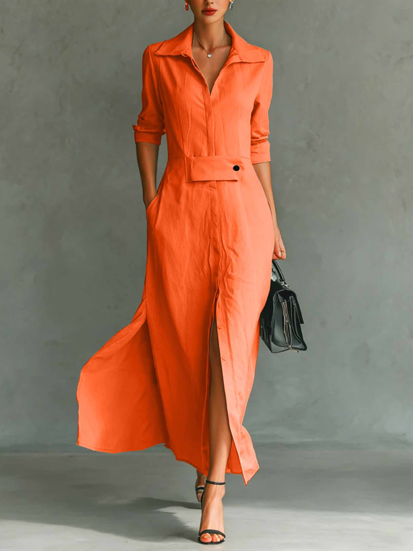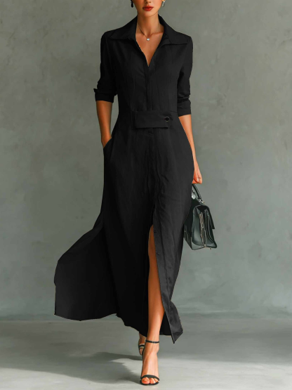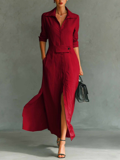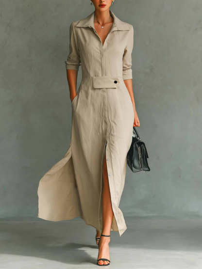 Women's Long Sleeve Spring/Fall Apricot Plain Split Joint V Neck Daily Going Out Vintage Maxi A-Line Tank Dress