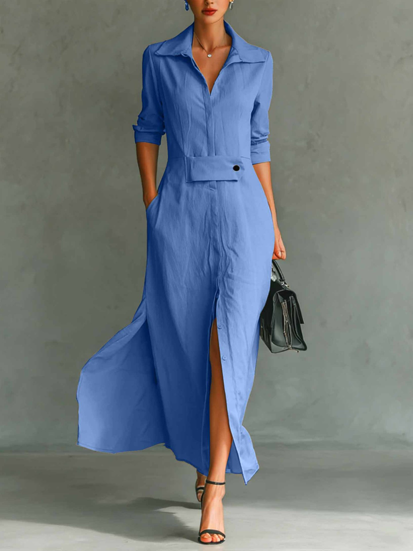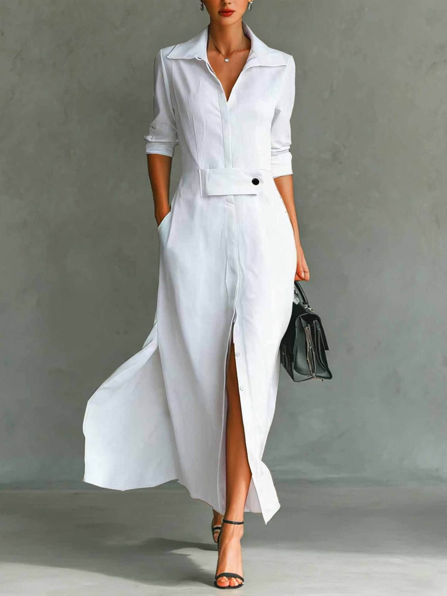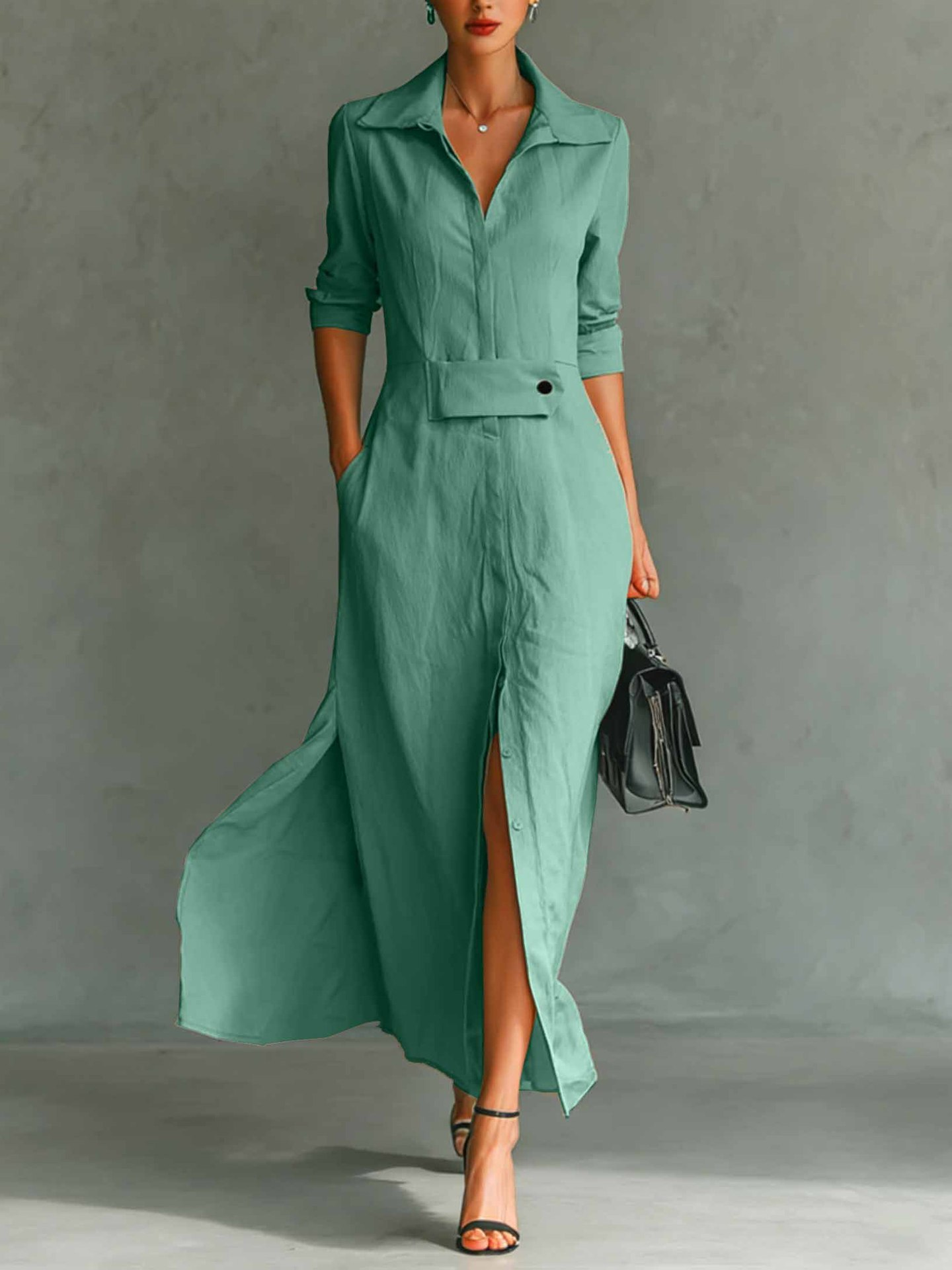 Women's Long Sleeve Spring/Fall Apricot Plain Split Joint V Neck Daily Going Out Vintage Maxi A-Line Tank Dress