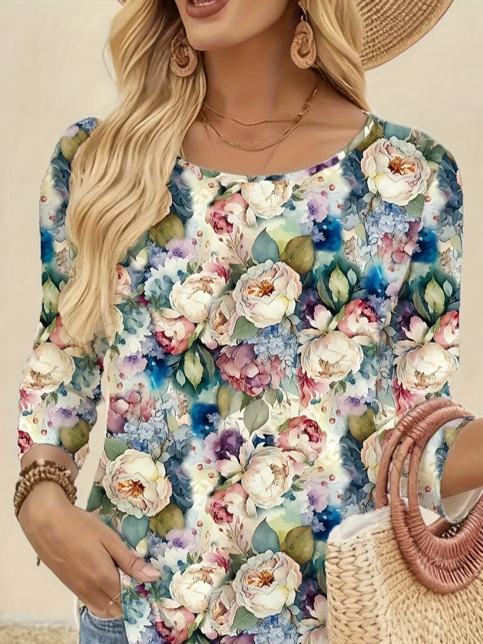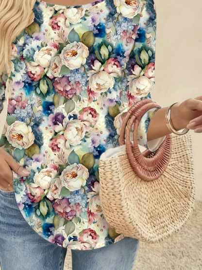 Women's Long Sleeve T-shirt Spring/Fall As Picture Floral Printing Jersey Crew Neck Daily Going Out Casual Top