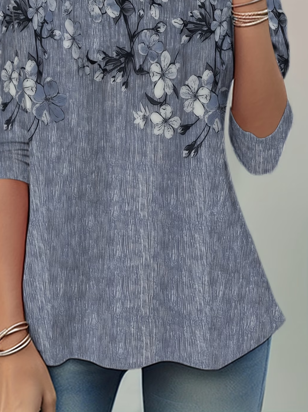 Women's Long Sleeve T-shirt Spring/Fall Gray Floral Jersey Crew Neck Daily Going Out Casual Top