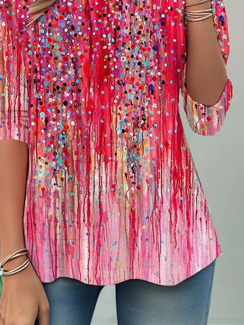 Women's Long Sleeve T-shirt Spring/Fall Pink Abstract Printing Jersey Crew Neck Daily Going Out Casual Top