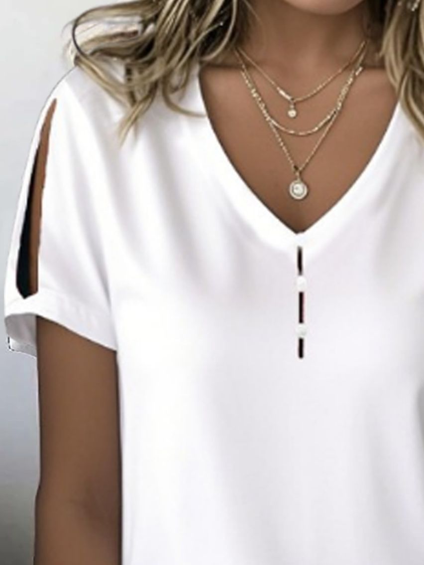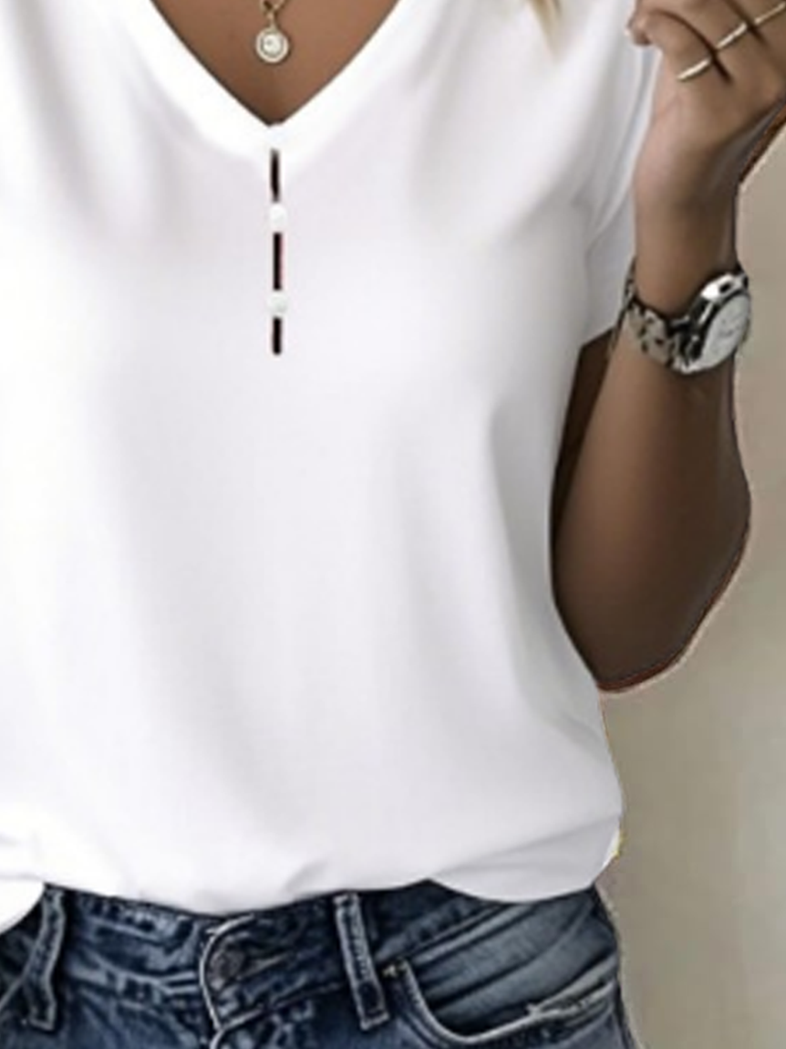 Women's Pearl Button V-Neck Short Sleeve T-Shirt