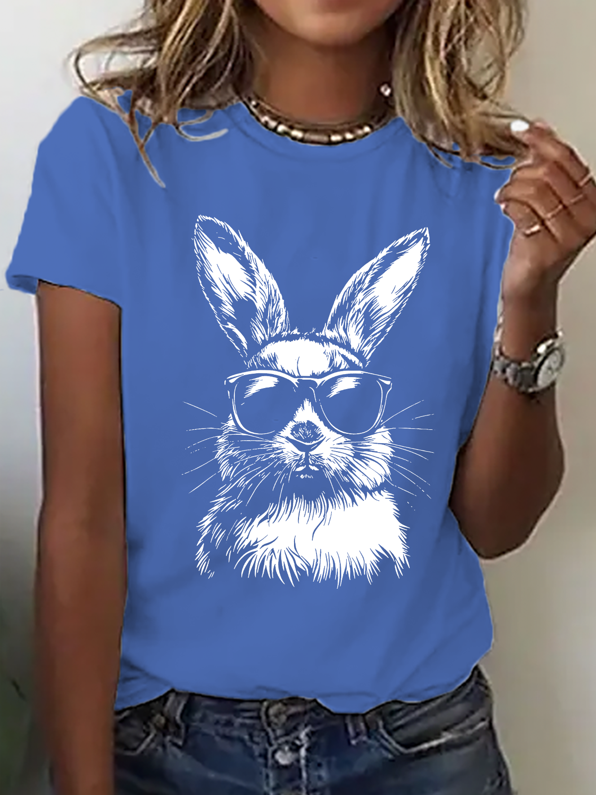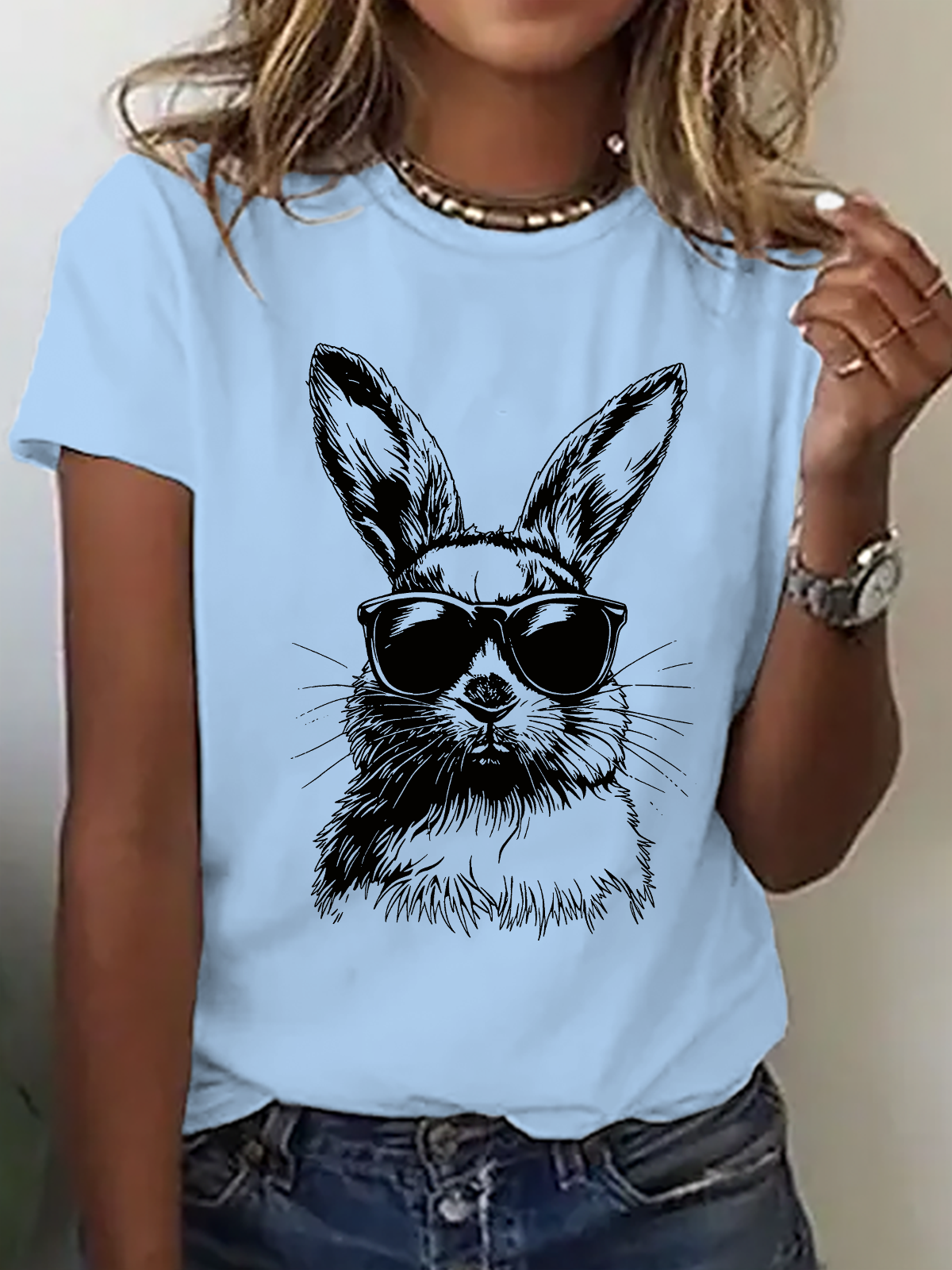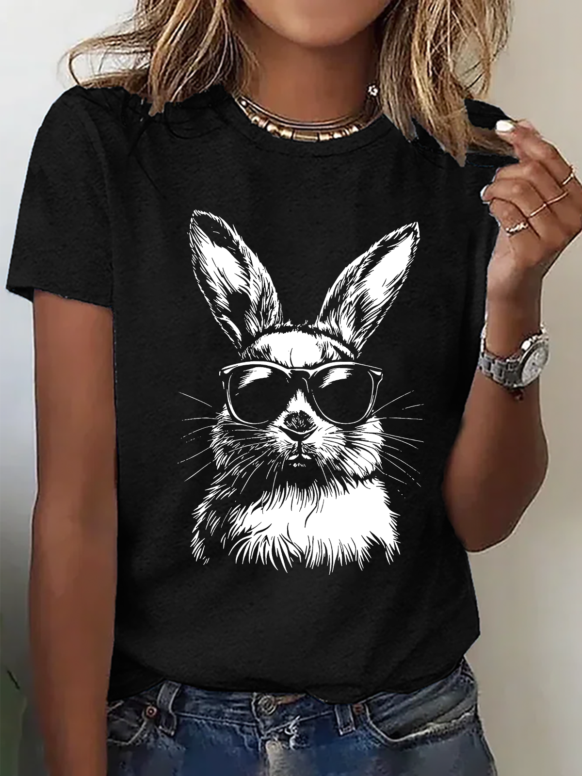 Women's Rabbit Easter Bunny Sunglasses short-sleeved T-shirt