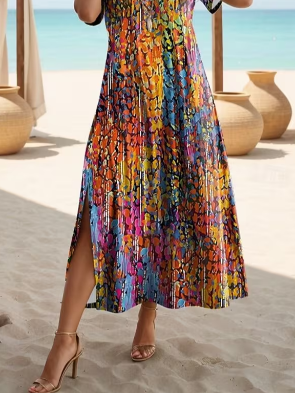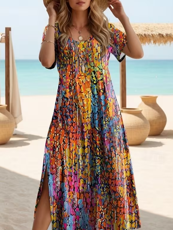 Women's Short Sleeve Summer As Picture Abstract Printing Crew Neck Daily Going Out Casual Maxi H-Line T-Shirt Dress Dress