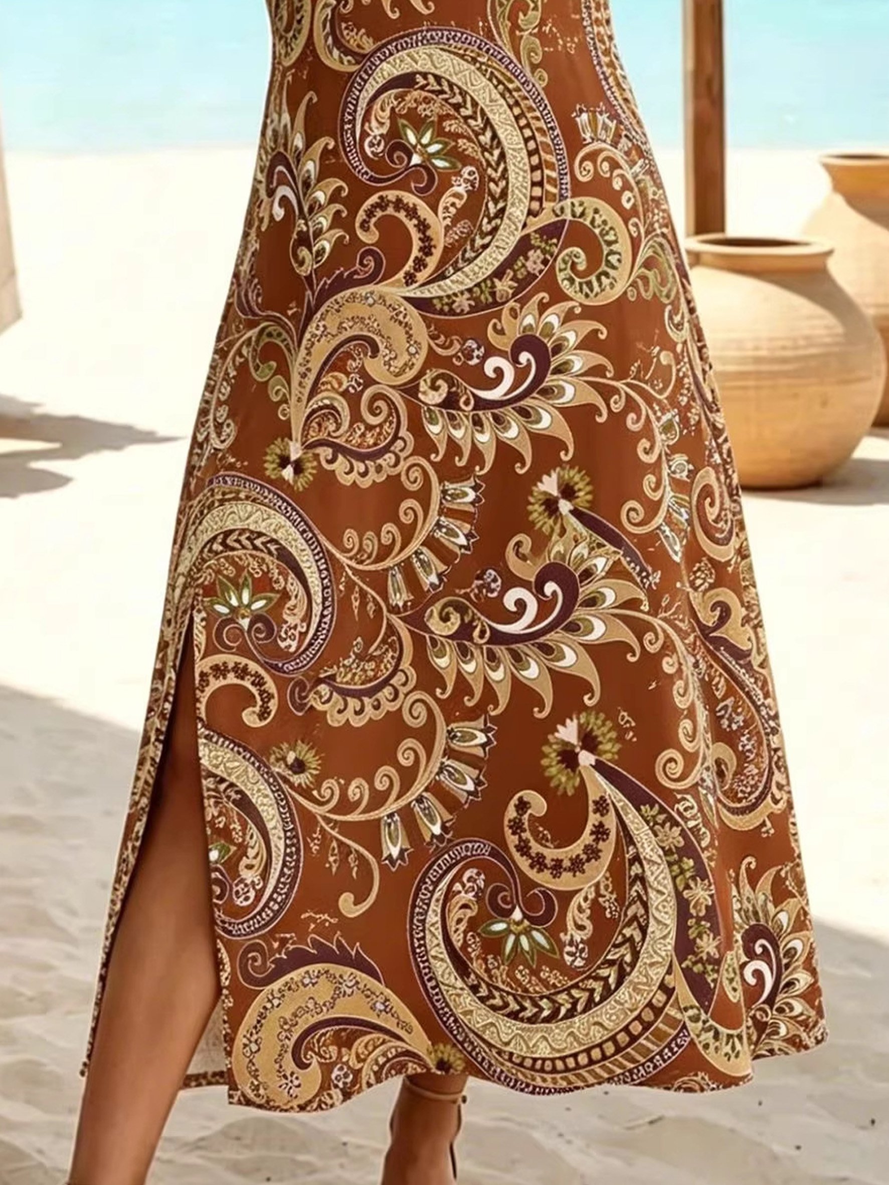 Women's Short Sleeve Summer As Picture Paisley Cashew Flowers V Neck Short Sleeve Daily Going Out Vacation Casual Boho Maxi A-Line T-Shirt Dress