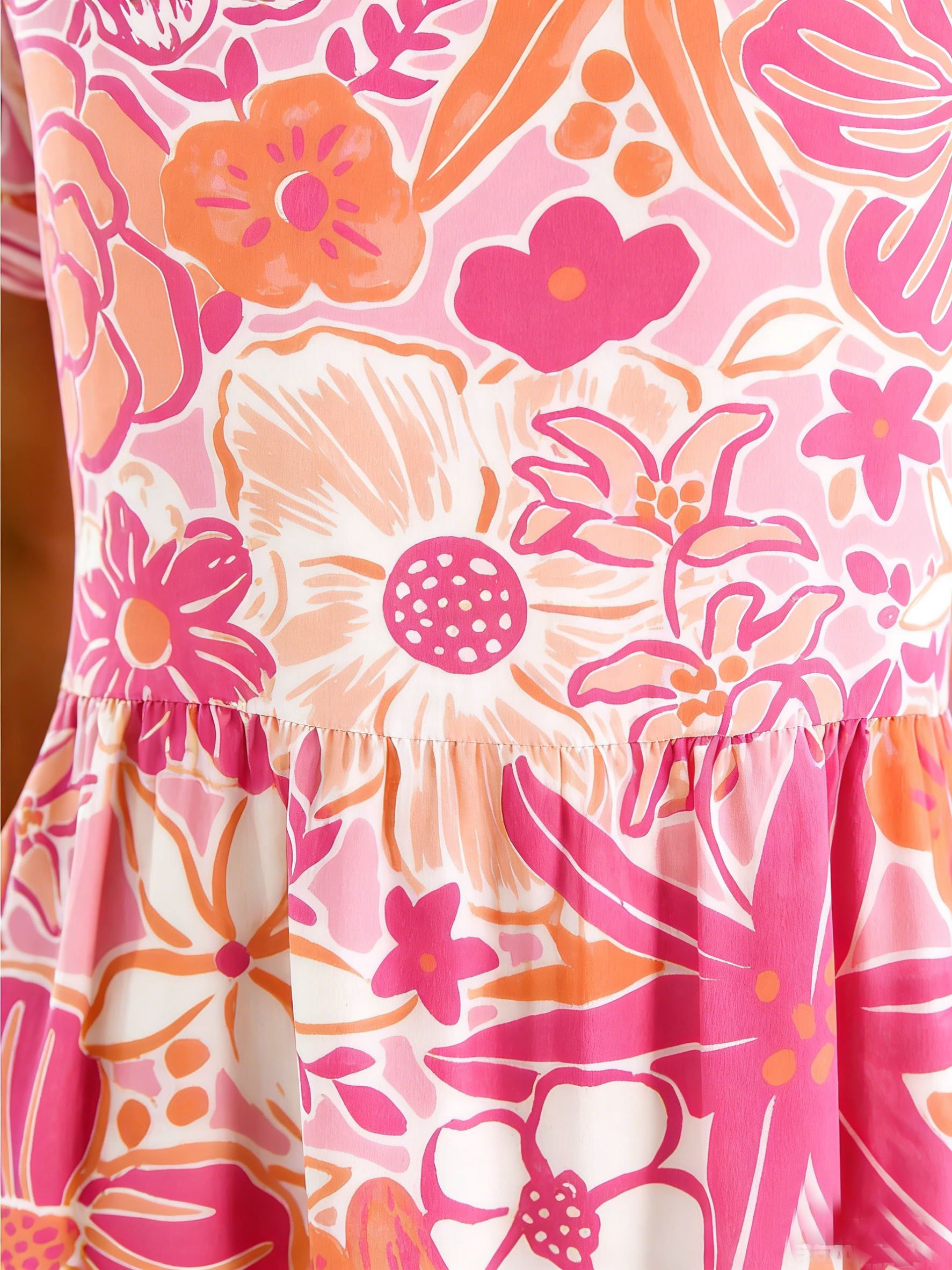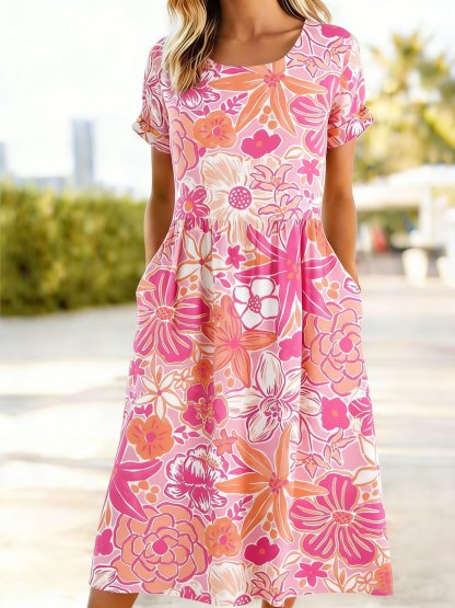 Women's Short Sleeve Summer Pink Floral Printing Round Neck Daily Going Out Casual Maxi A-Line Dress