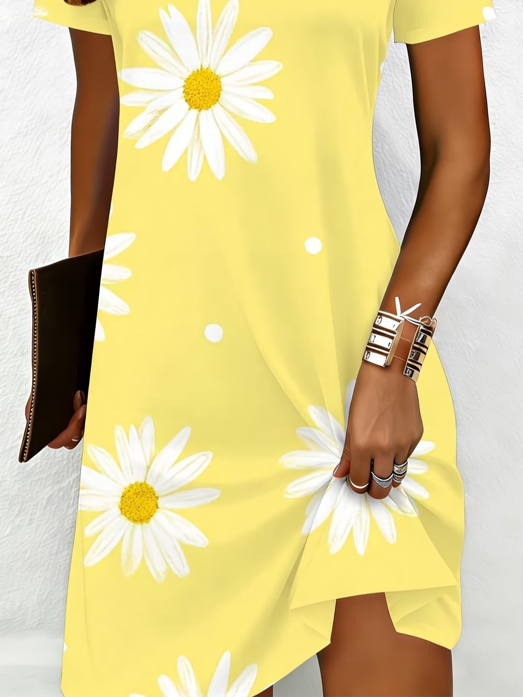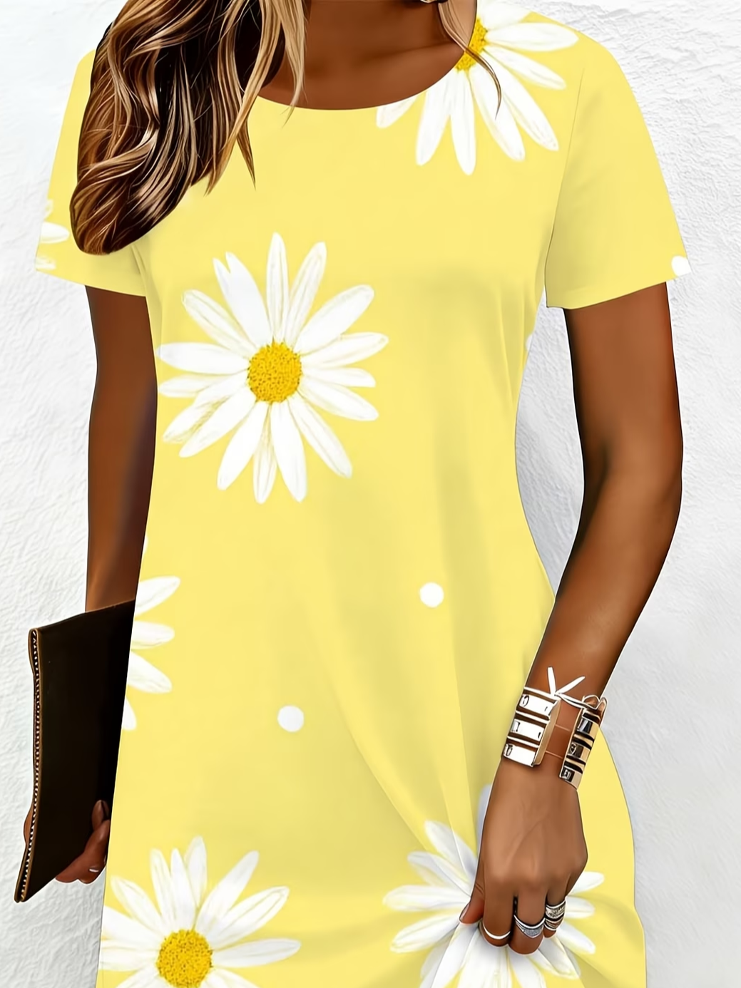 Women's Short Sleeve Summer Yellow Floral Printing Crew Neck Daily Going Out Casual Midi A-Line T-Shirt Dress Dress