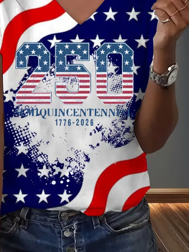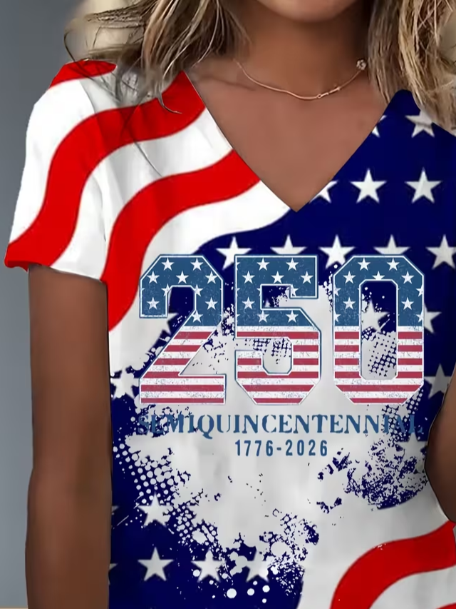 Women's Short Sleeve T-shirt Summer As Picture America Flag Printing V Neck Holiday Going Out Vintage Top