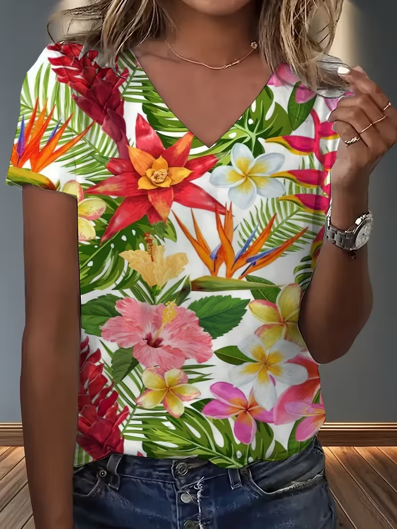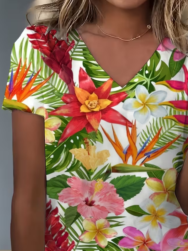 Women's Short Sleeve T-shirt Summer As Picture Floral Printing V Neck Holiday Going Out Vintage Top