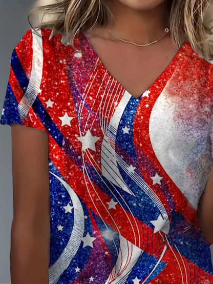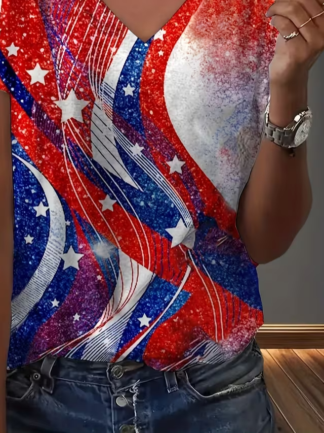 Women's Short Sleeve T-shirt Summer As Picture Star Printing V Neck Holiday Going Out Vintage Top