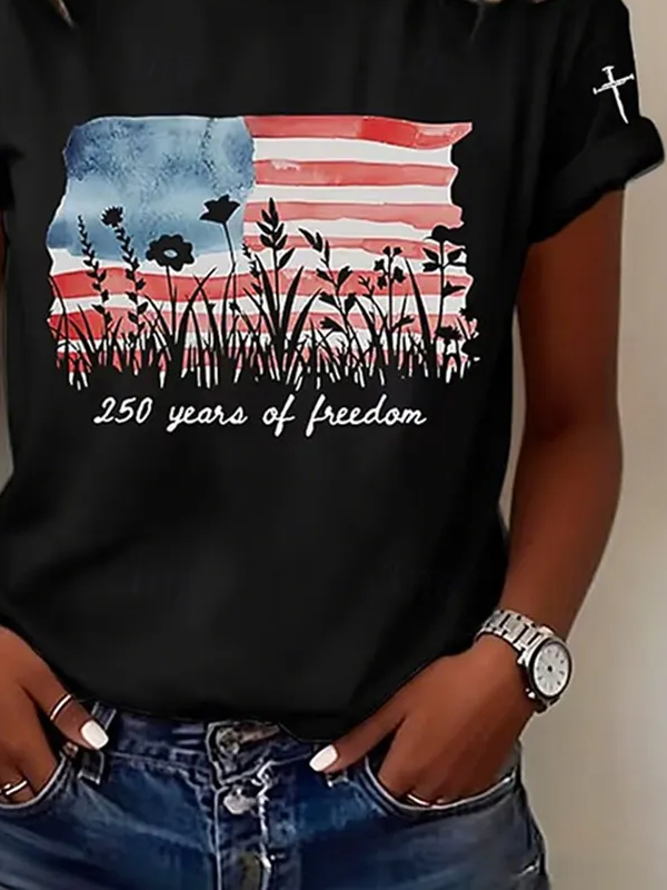 Women's Short Sleeve T-shirt Summer Black Independence Day (Flag) Printing Jersey Crew Neck Daily Going Out Casual Top