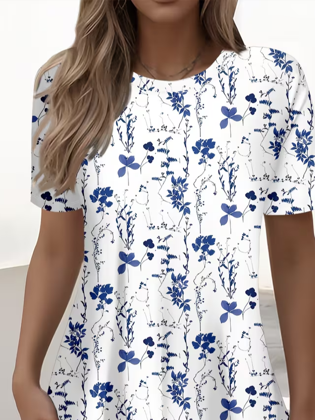 Women's Short Sleeve T-shirt Summer White Floral Printing Jersey Crew Neck Daily Going Out Casual Top