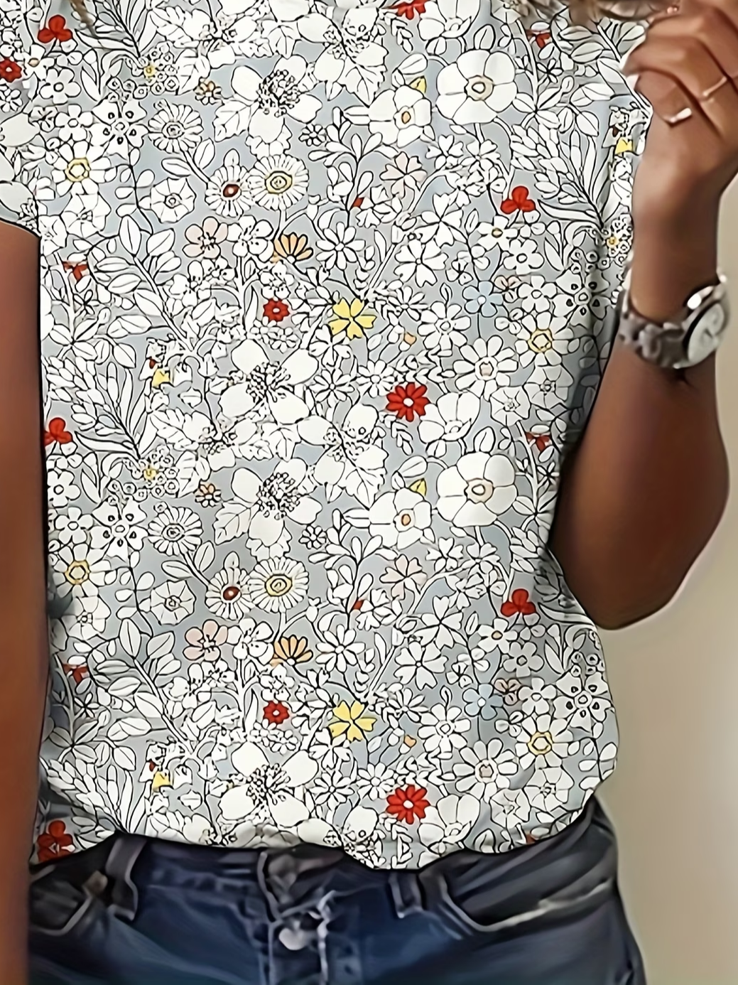Women's Short Sleeve T-shirt Summer White Floral Printing Jersey Crew Neck Daily Going Out Casual Top