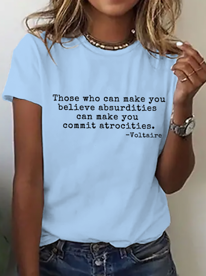 Women's Voltaire Quote Anti-Violence Politics Short-Sleeve T-Shirt