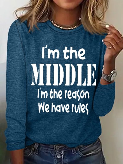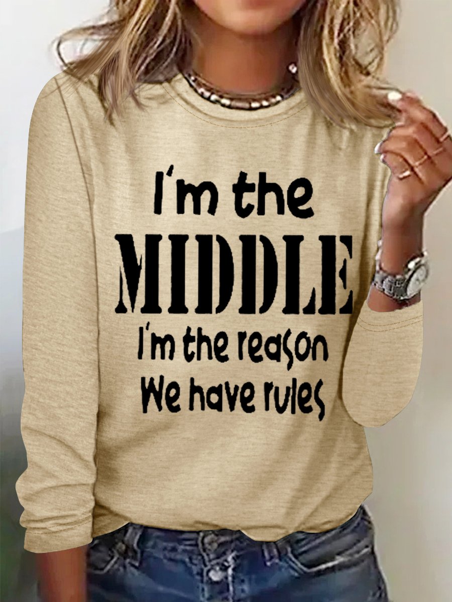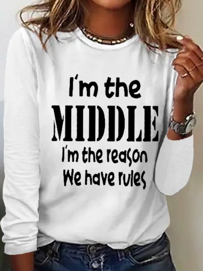 Women‘s I'm The Middle Cotton-Blend Simple Text Letters Long Sleeve Top