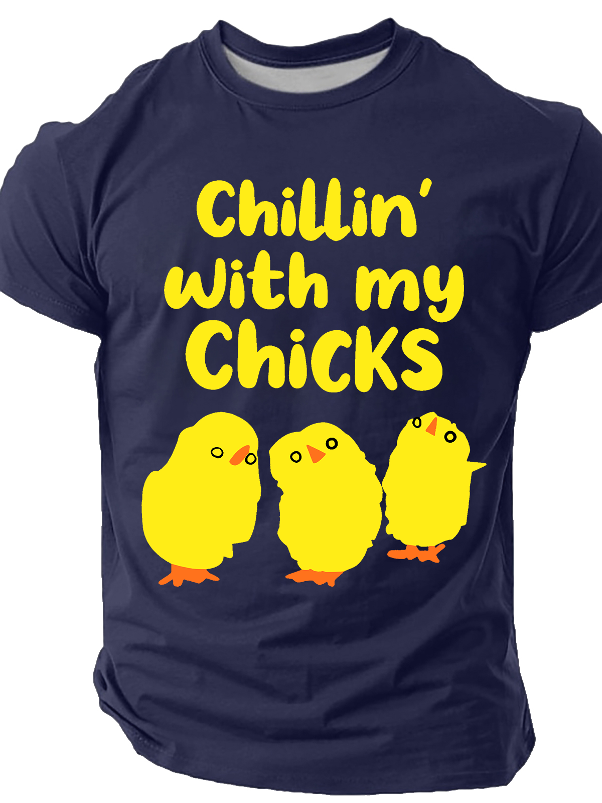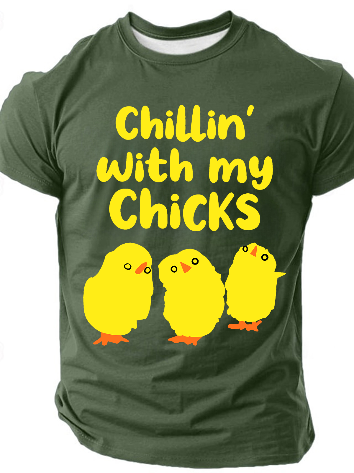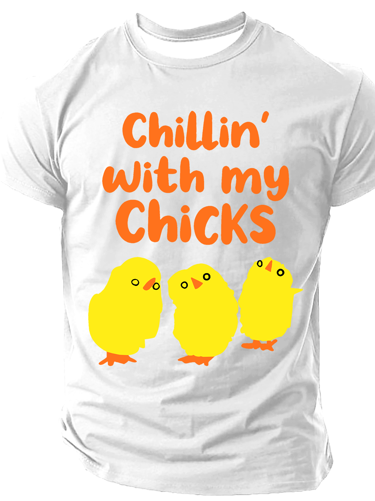 Chilling With My Chicks Funny Easter Cotton T-Shirt