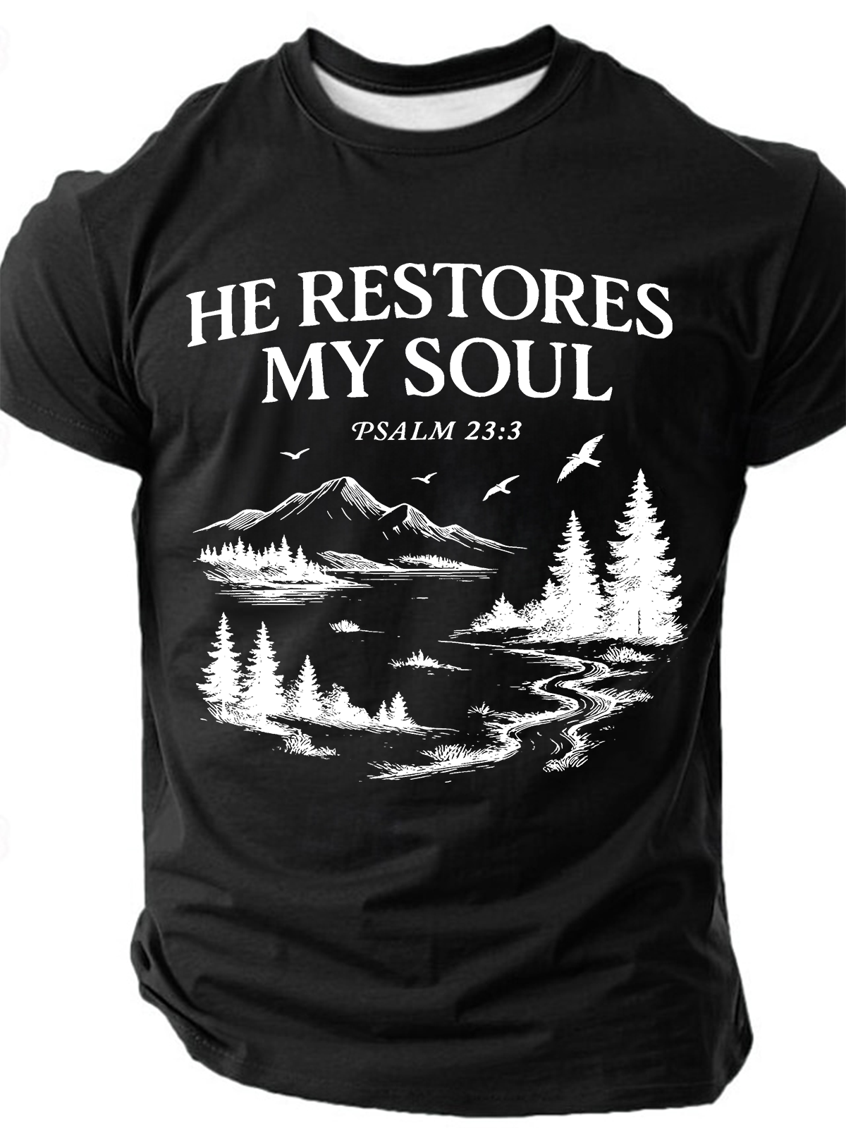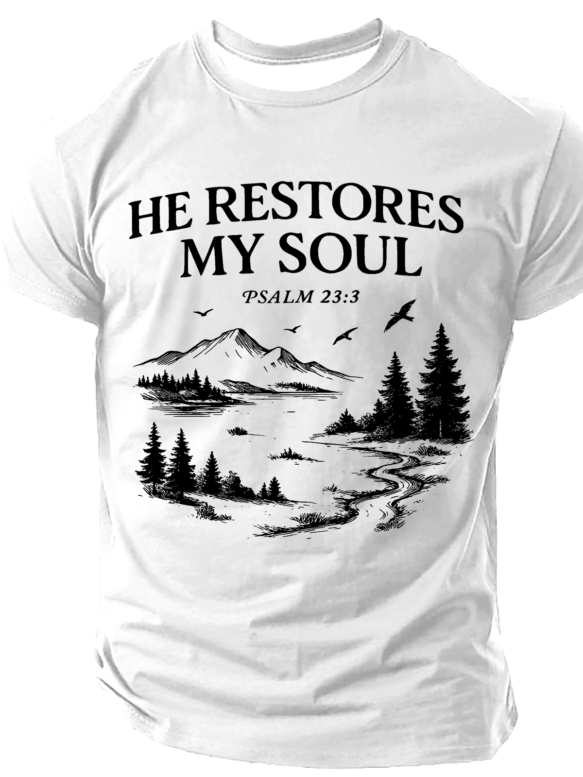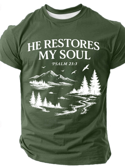 Christian He Restores My Soul Psalm Midweight Cotton T-Shirt