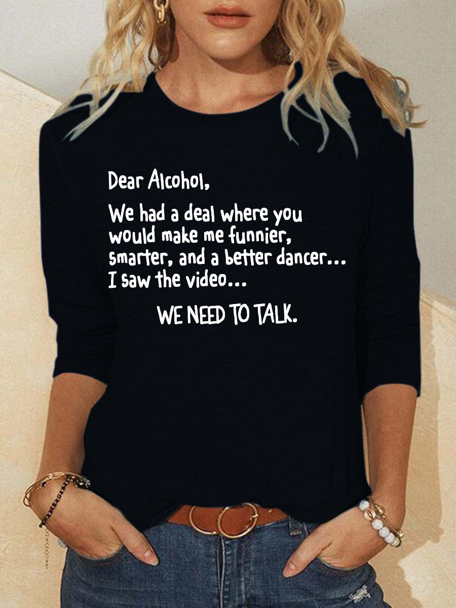 Dear Alcohol Casual Crew Neck Long Sleeve Top