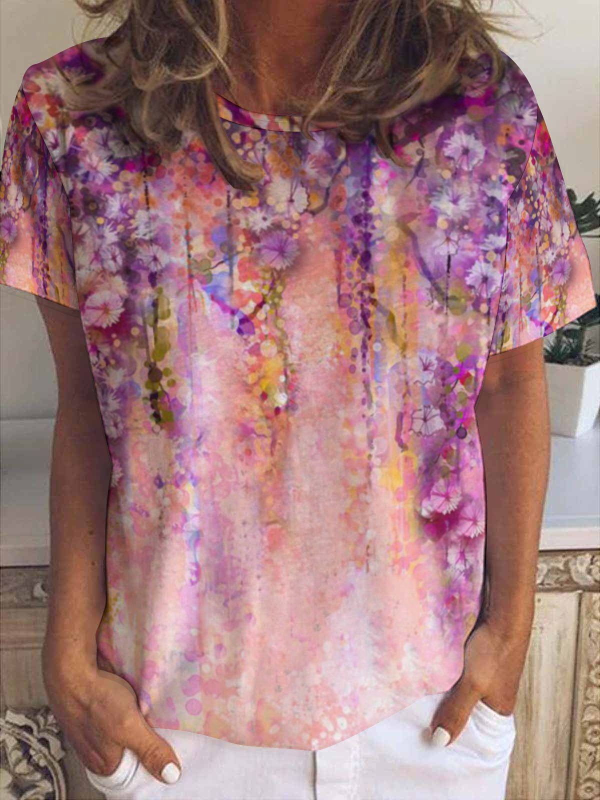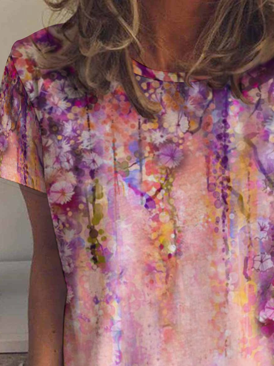 Floral Gradient Print Crew Neck Short Sleeve T-Shirt