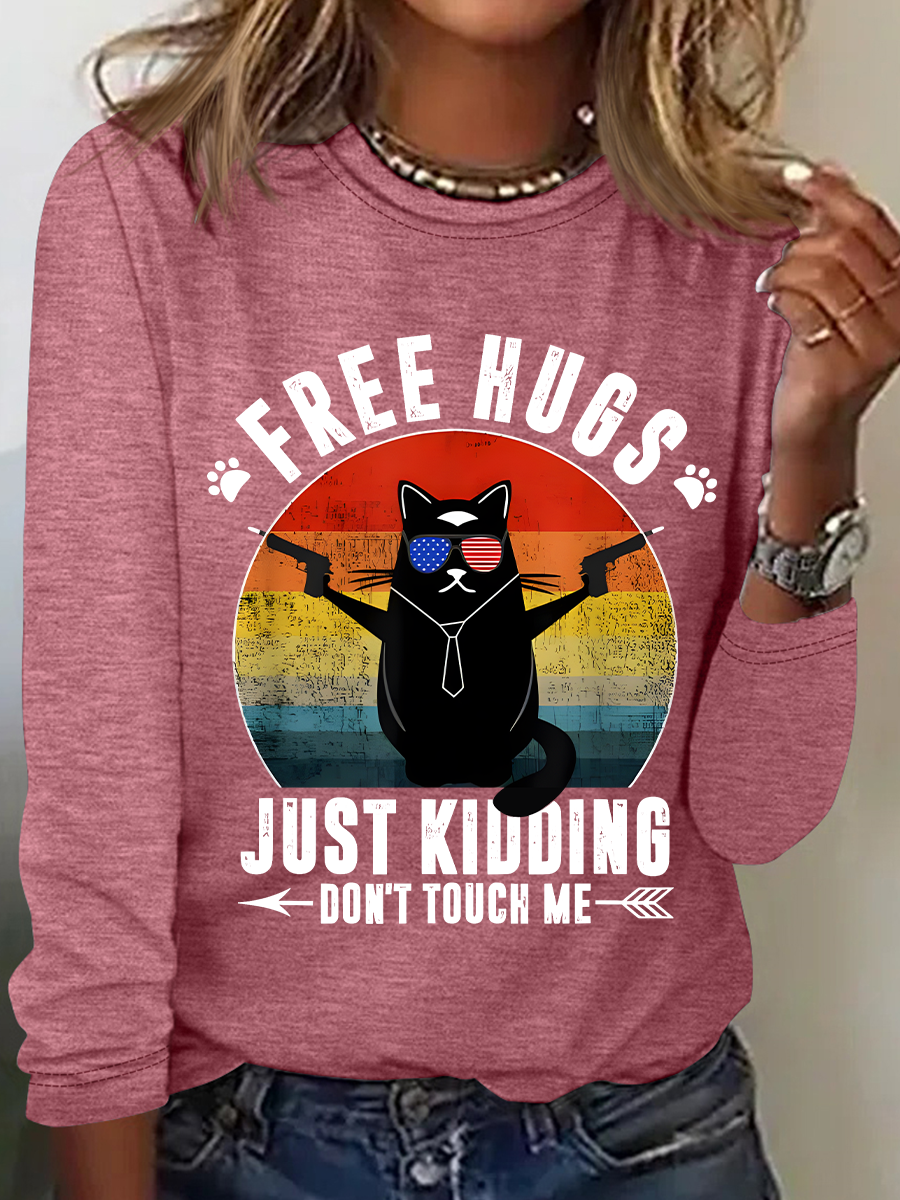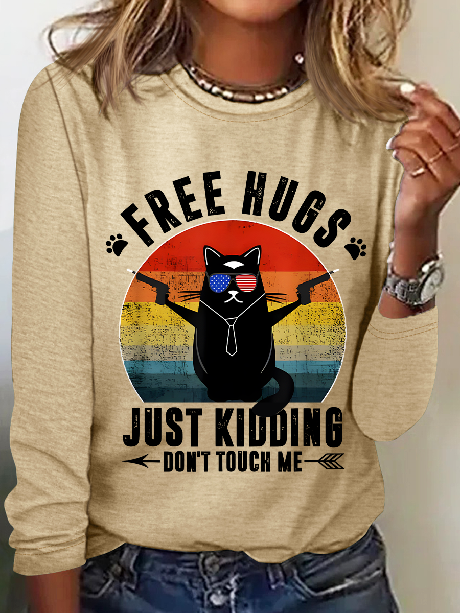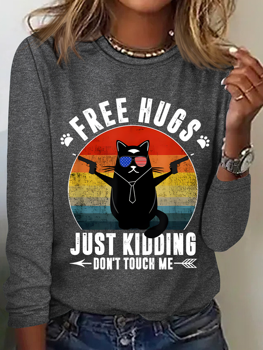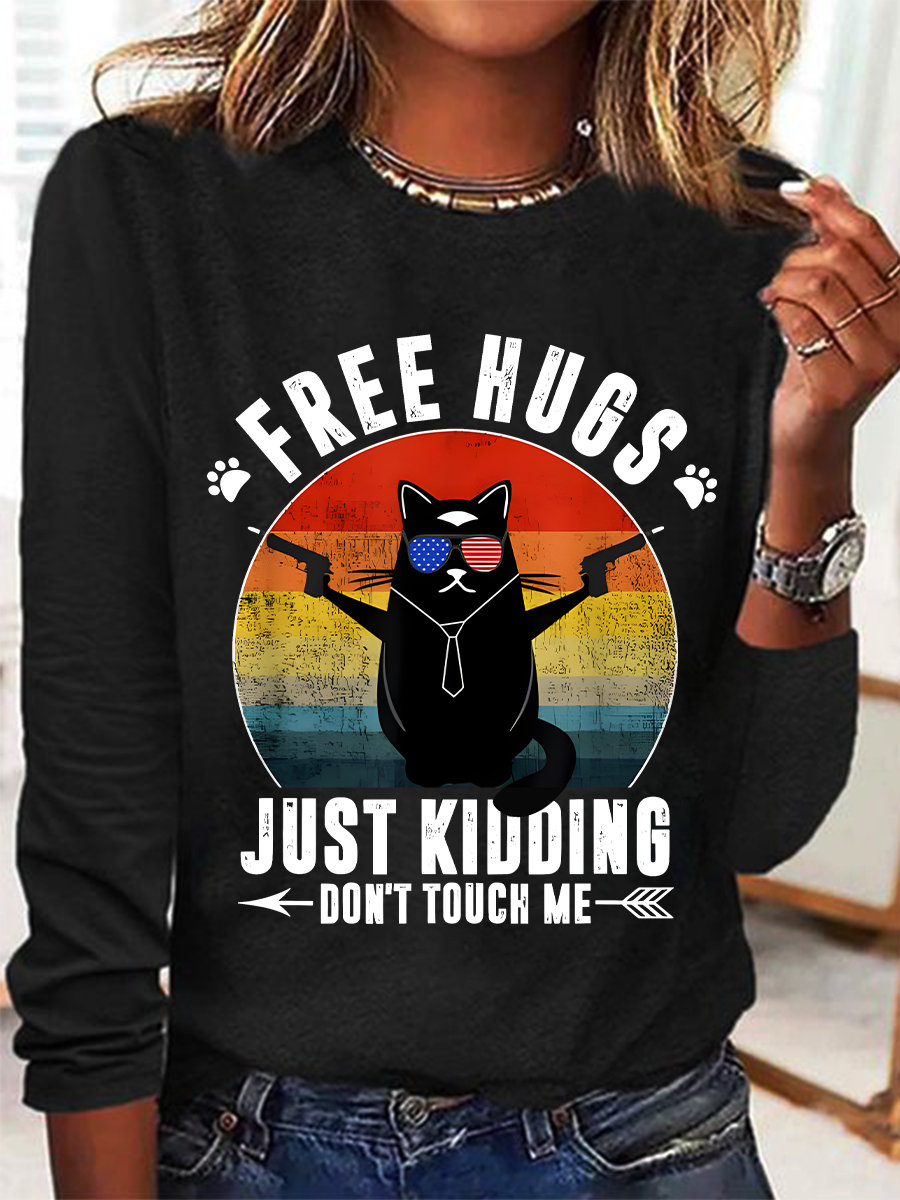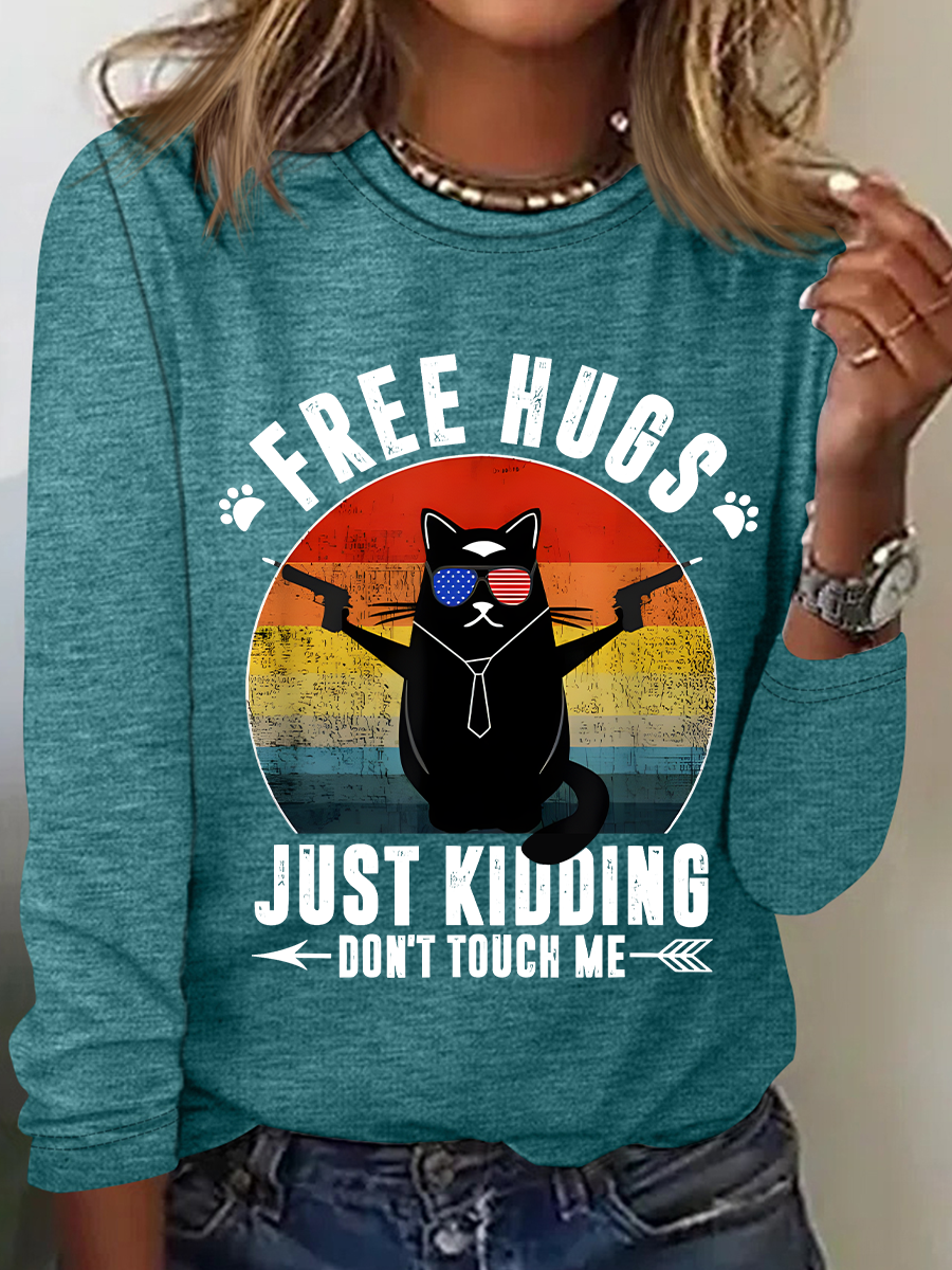 Free Hugs Just Kidding Don't Touch Me Casual Long Sleeve Shirt