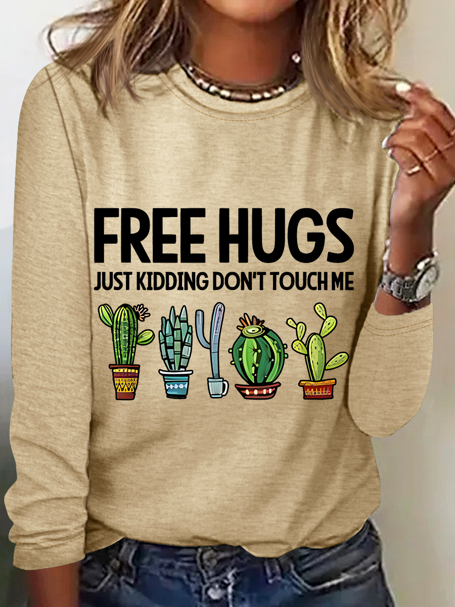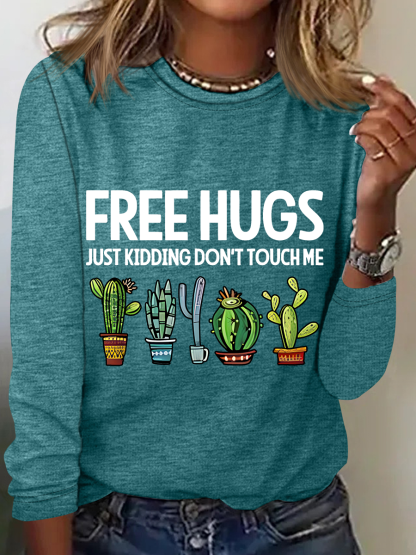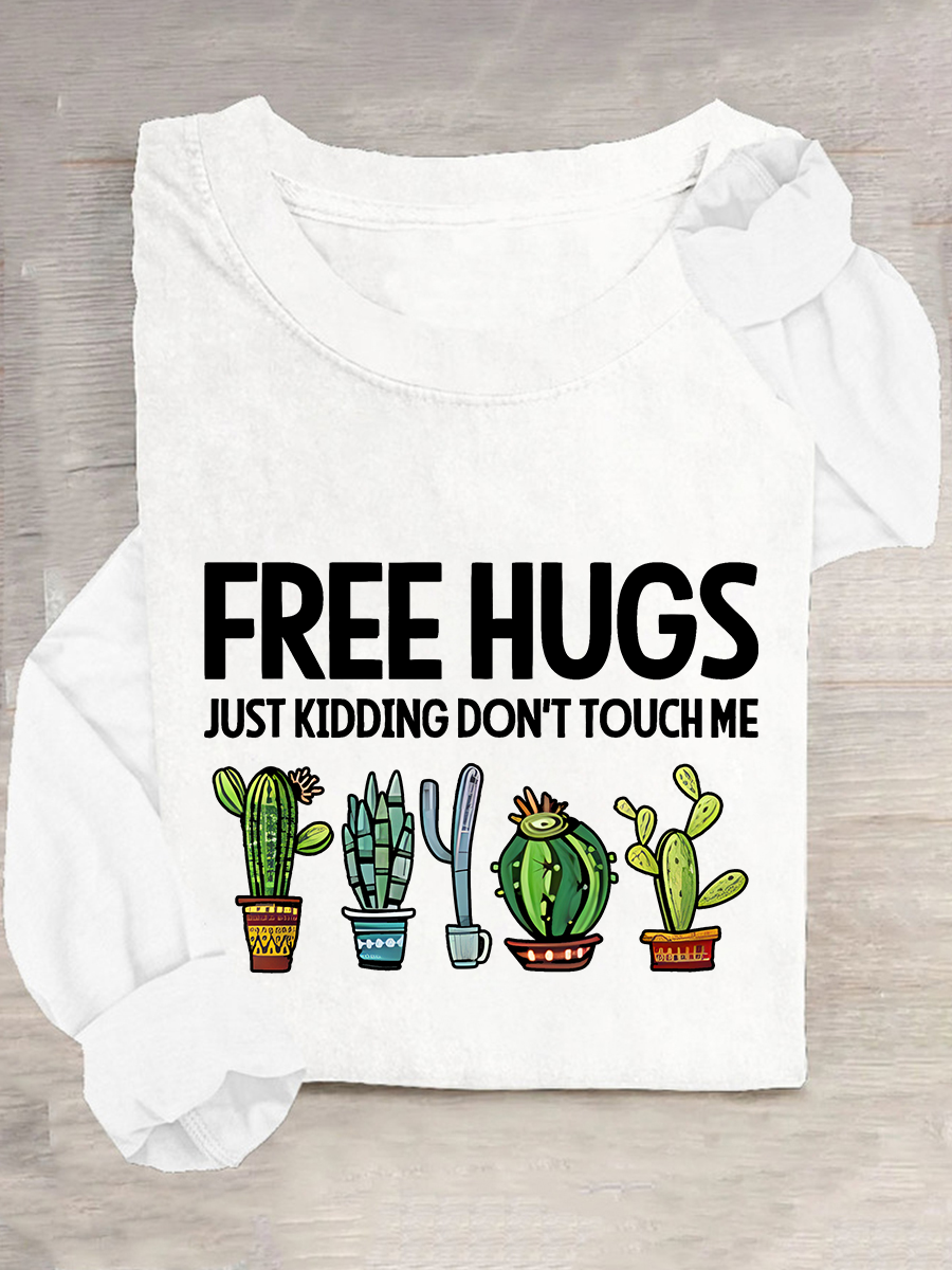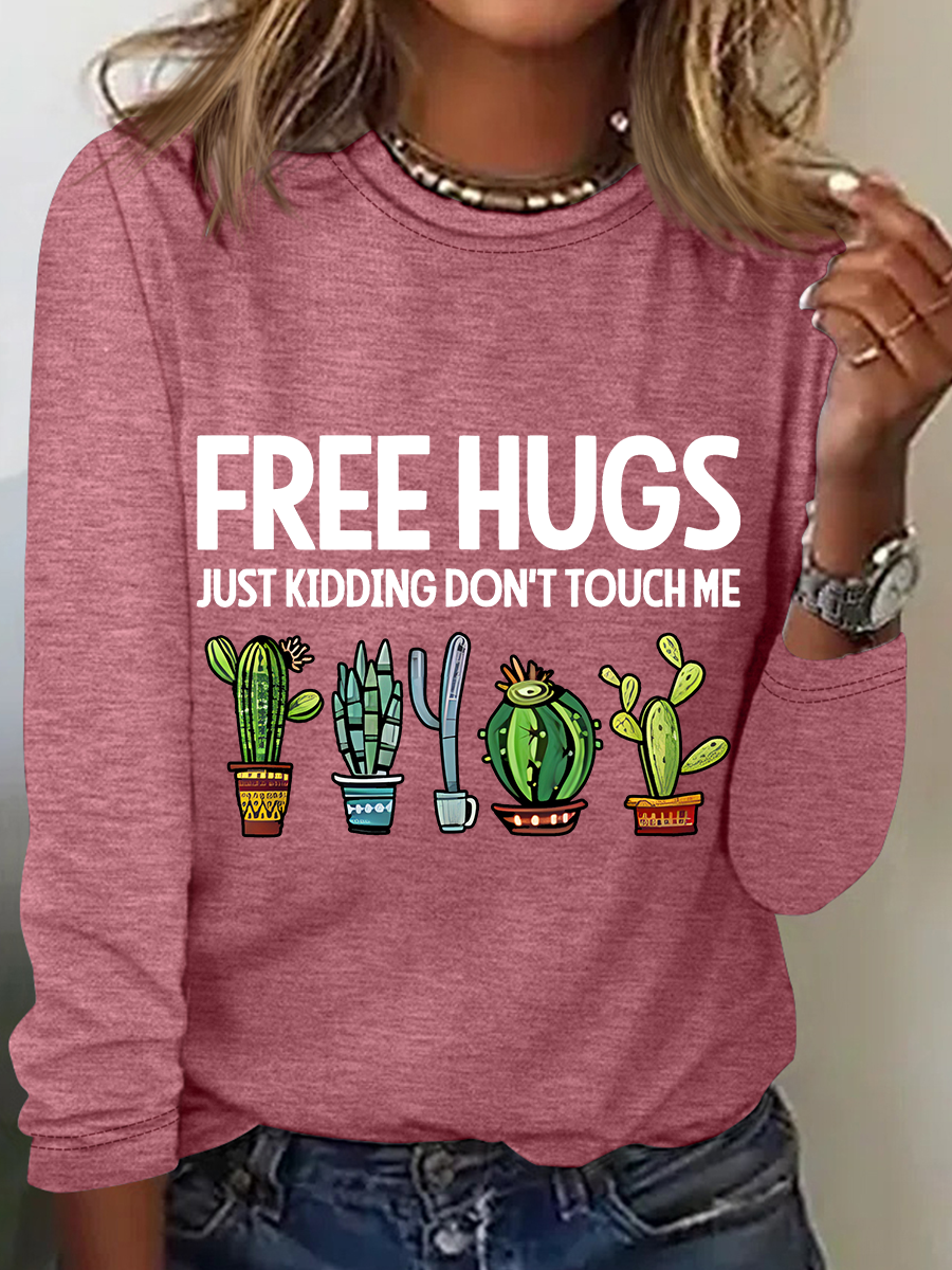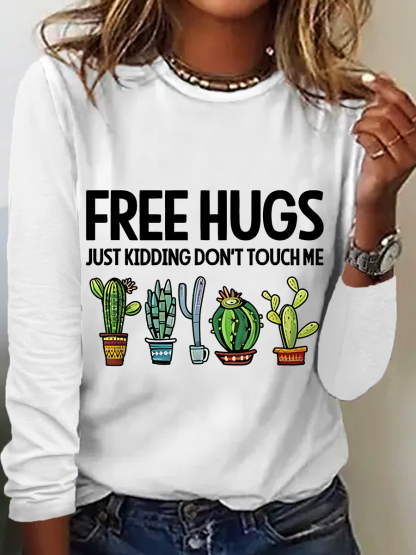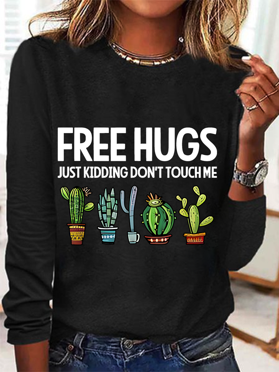 Free Hugs Just Kidding Don't Touch Me Casual Long Sleeve Shirt