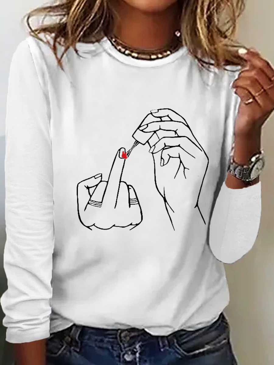 Funny Text Letters Simple Crew Neck Shirt