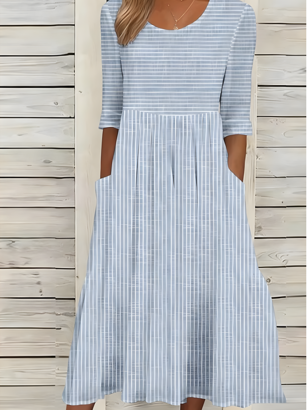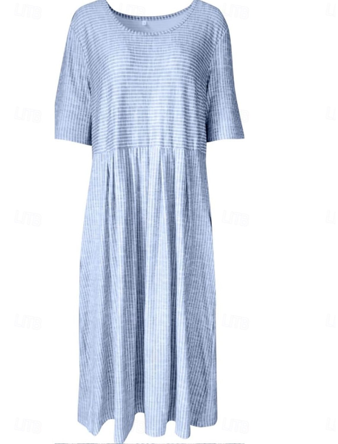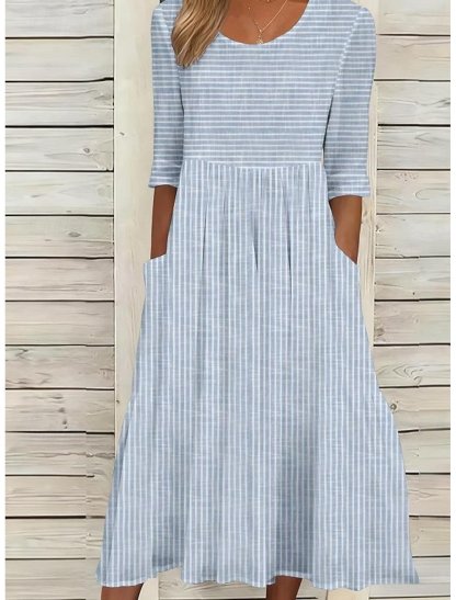Loose Crew Neck Casual Striped Dress With No