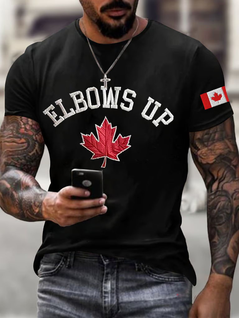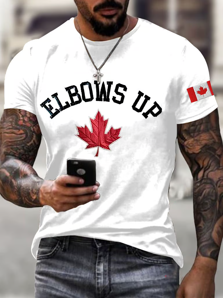 Men'S Retro Canada Elbows Up Printed Casual Crew Neck T-Shirt