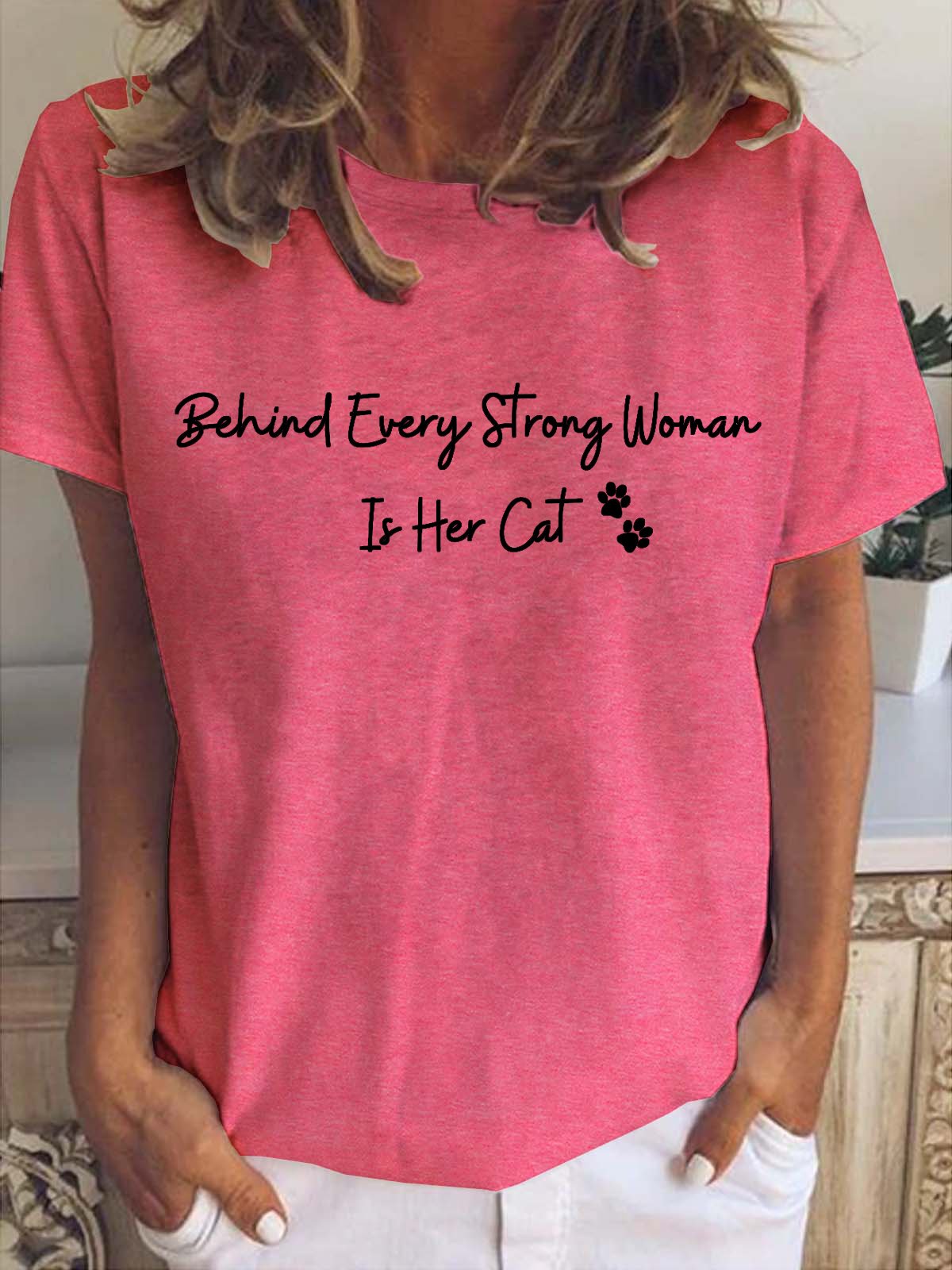 Strong woman round neck short sleeve T-shirt