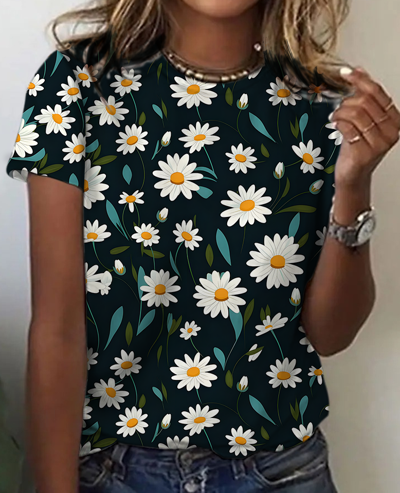 Women's Art Floral Print Cotton T-Shirt