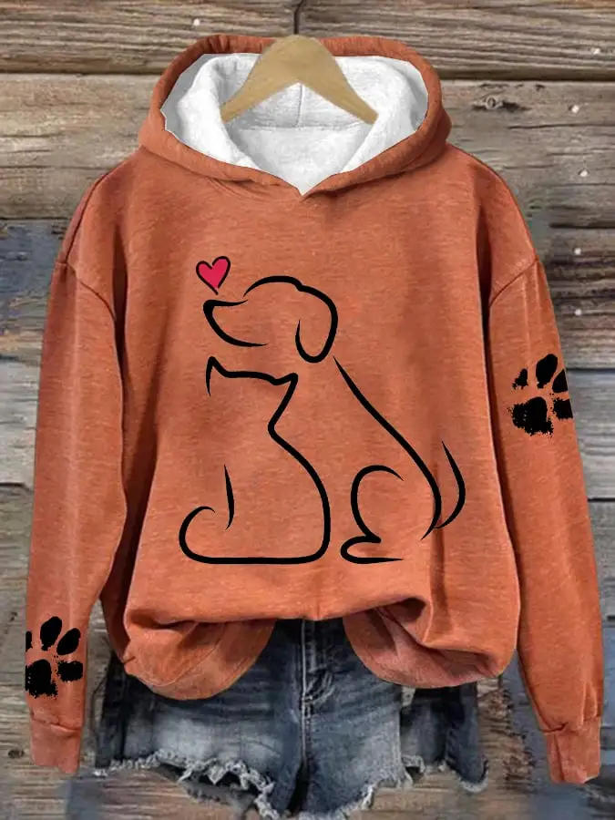 Women's Dog And Love Valentine's Day Loose Casual Hoodie
