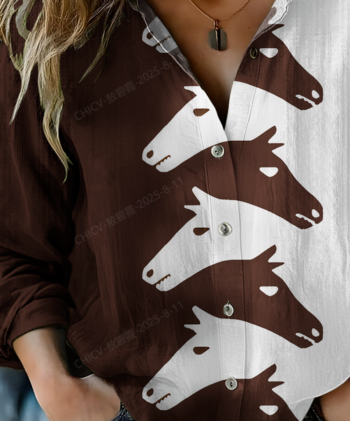 Women's Vintage Western Horse Print Casual Shirt