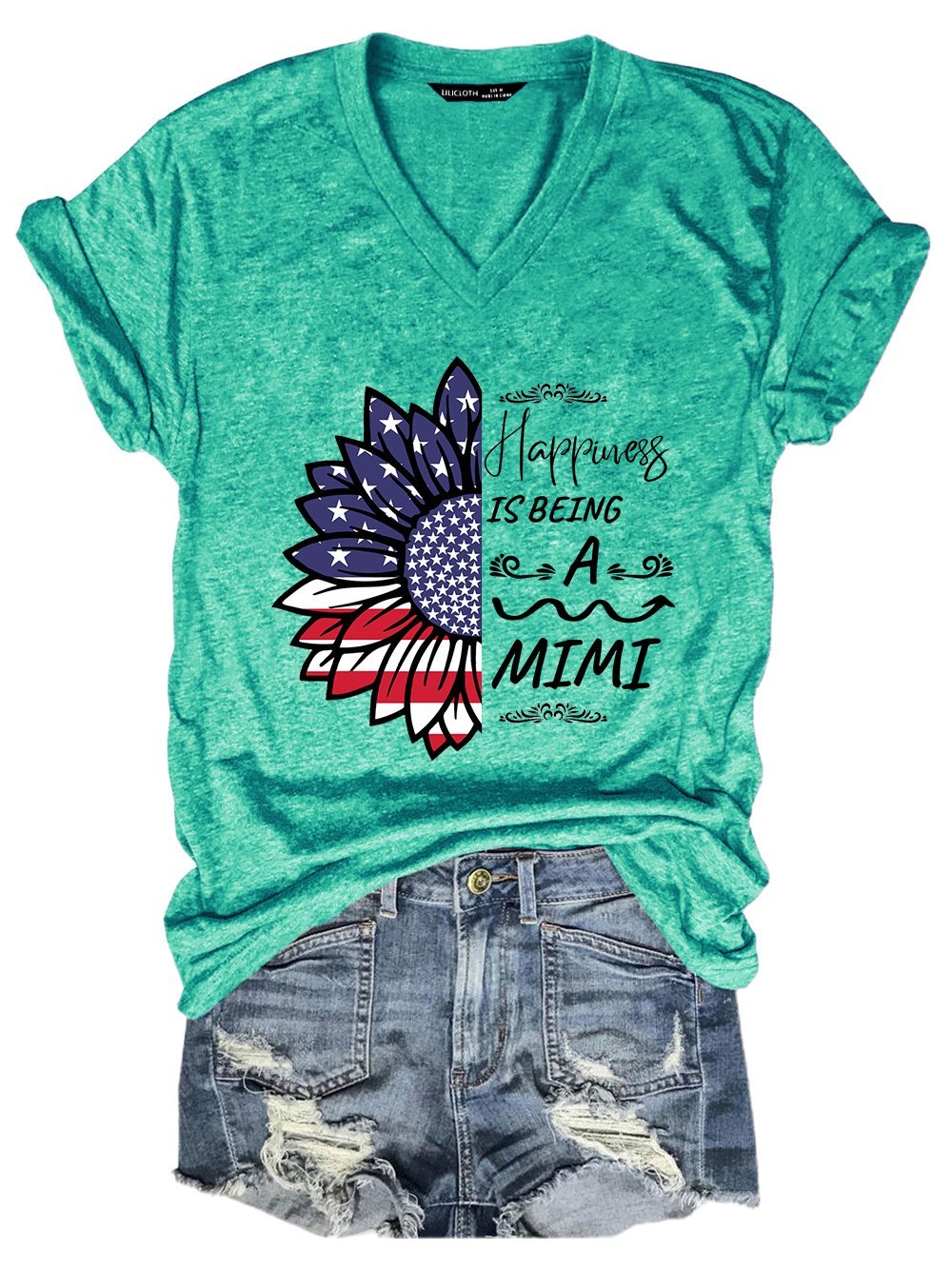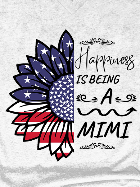 American Flag Sunflower Happiness Is Being A Mimi Casual Letter Cotton Blends T-Shirt