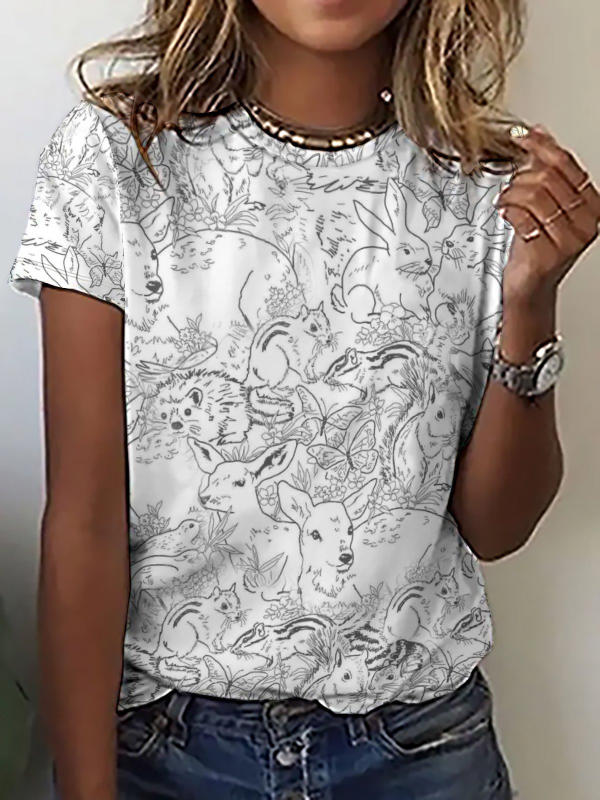 Casual Simple Animal Print Crew Neck T-Shirt