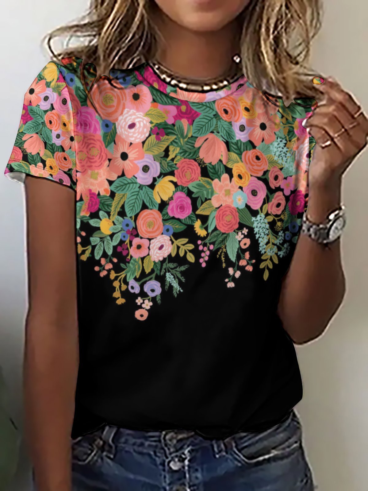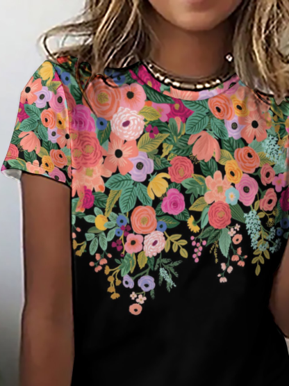 Casual Vintage Floral Print Crew Neck T-Shirt