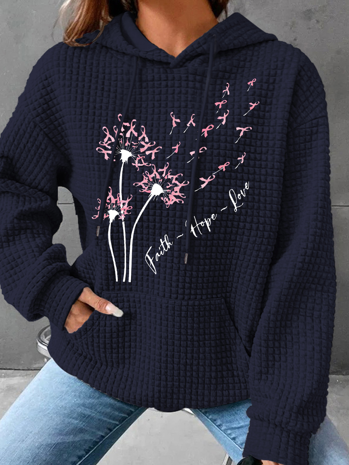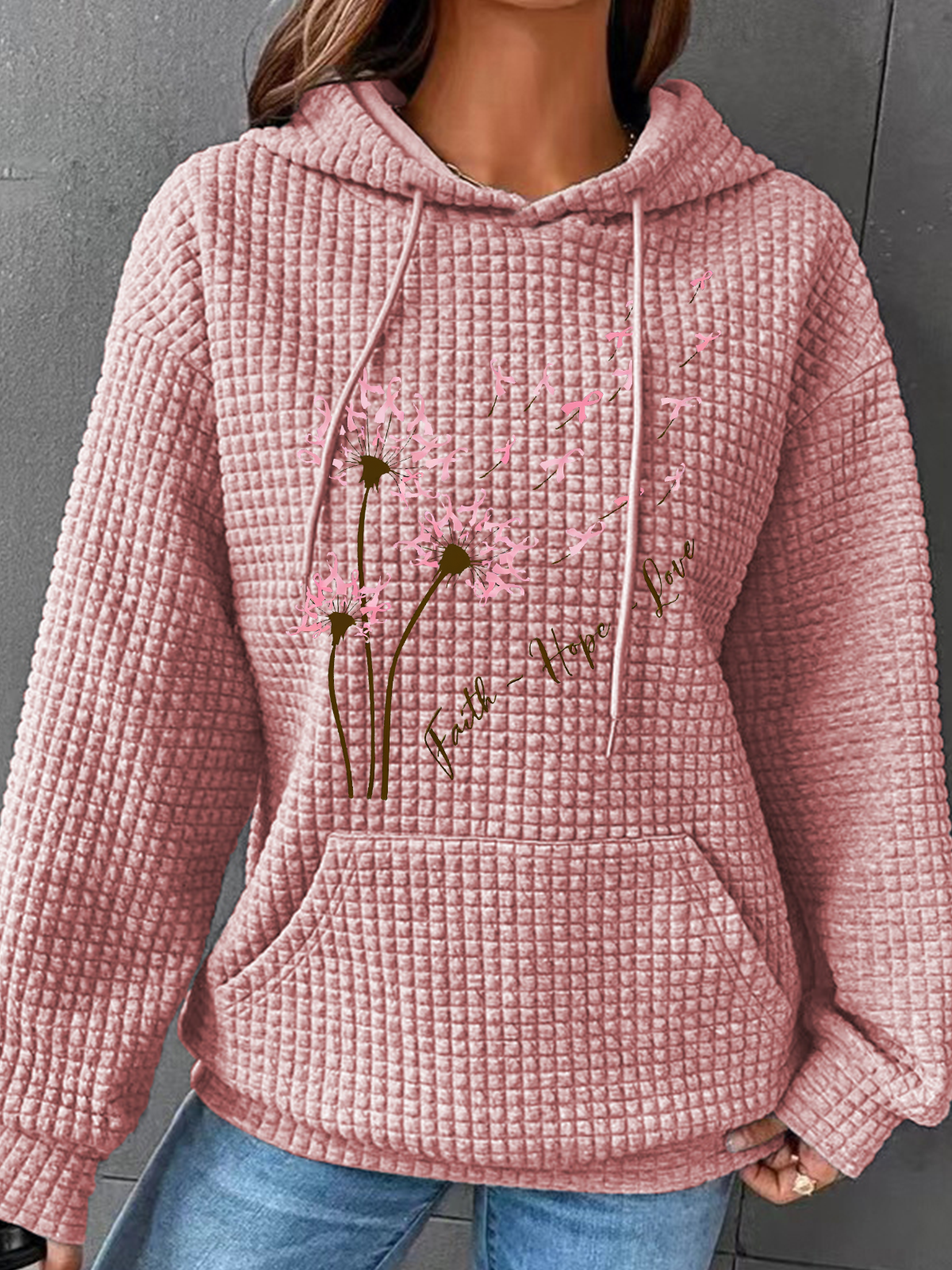 Faith Hope Love Dandelion Pink Ribbon Dandelion Simple Loose Hoodie