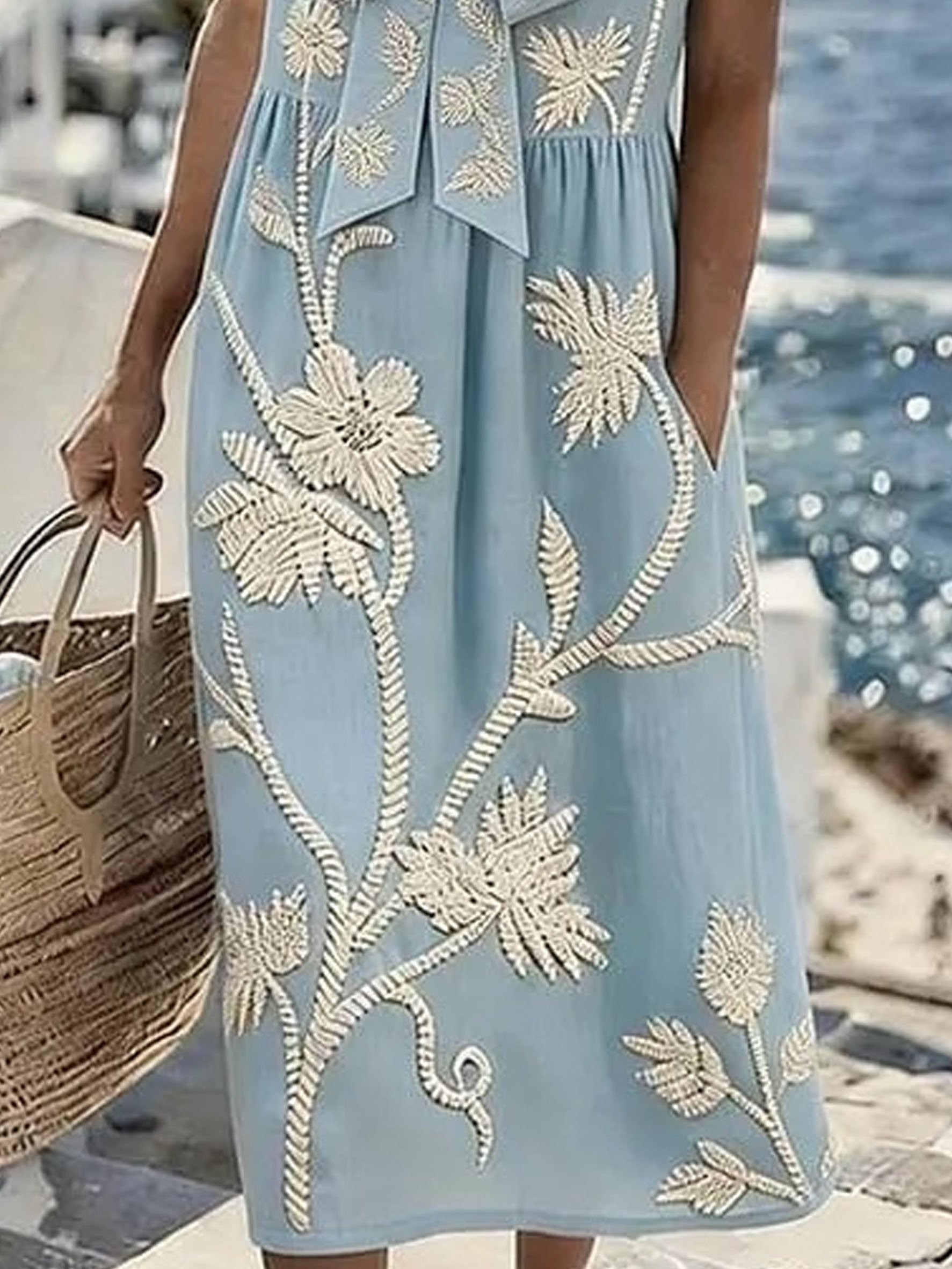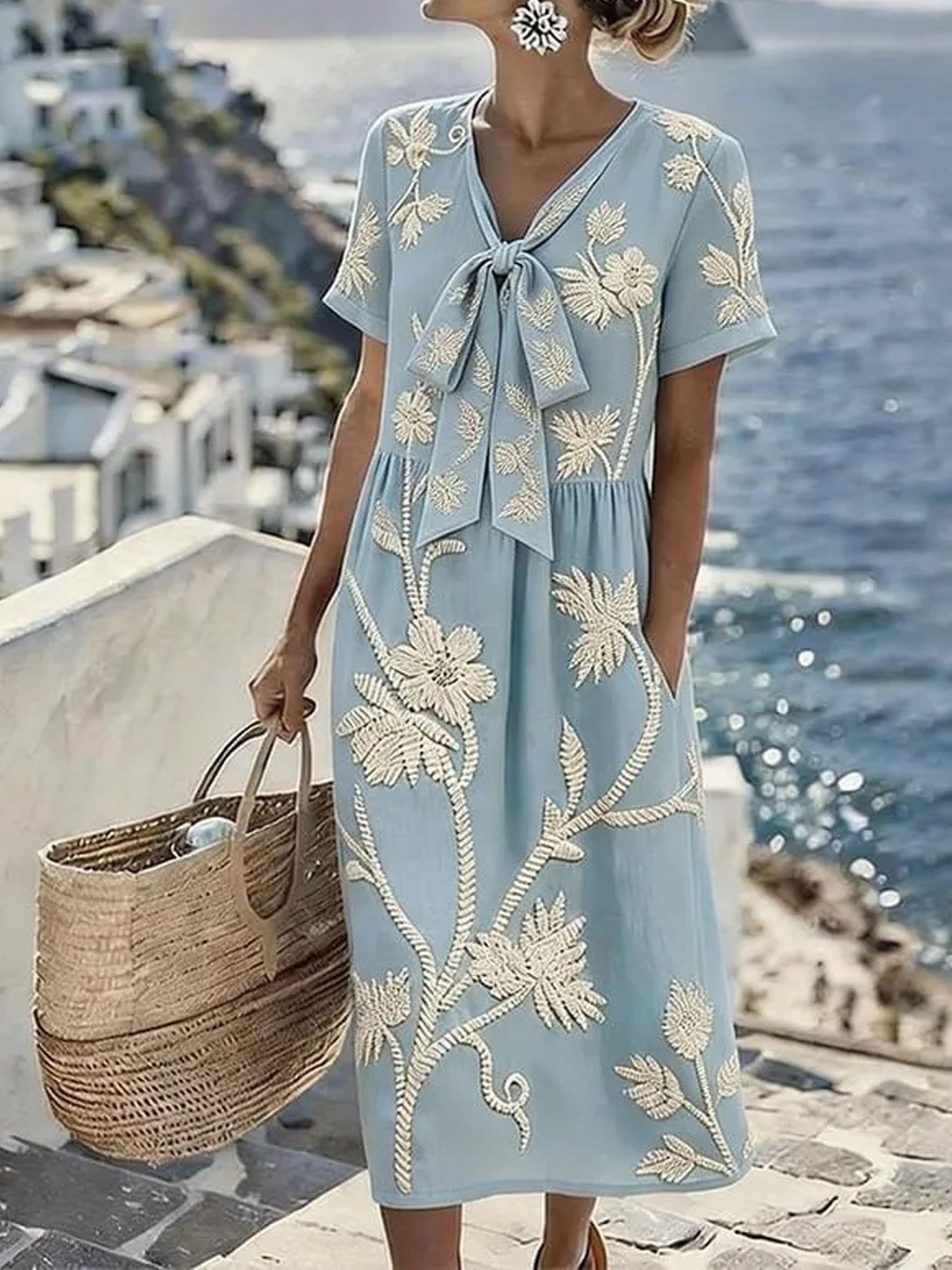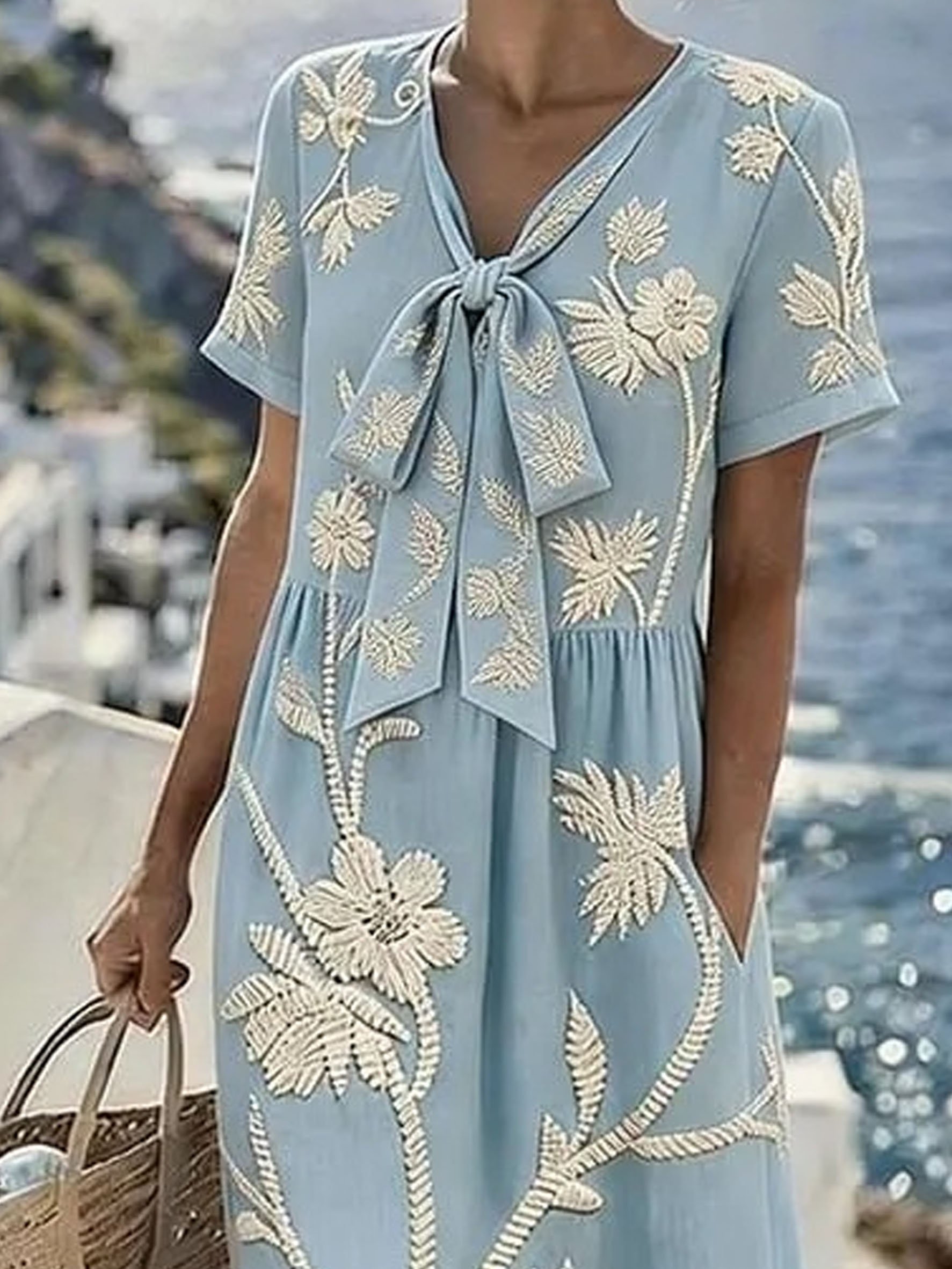 Floral Short Sleeve Tie Detail Elegant Casual Maxi Dress