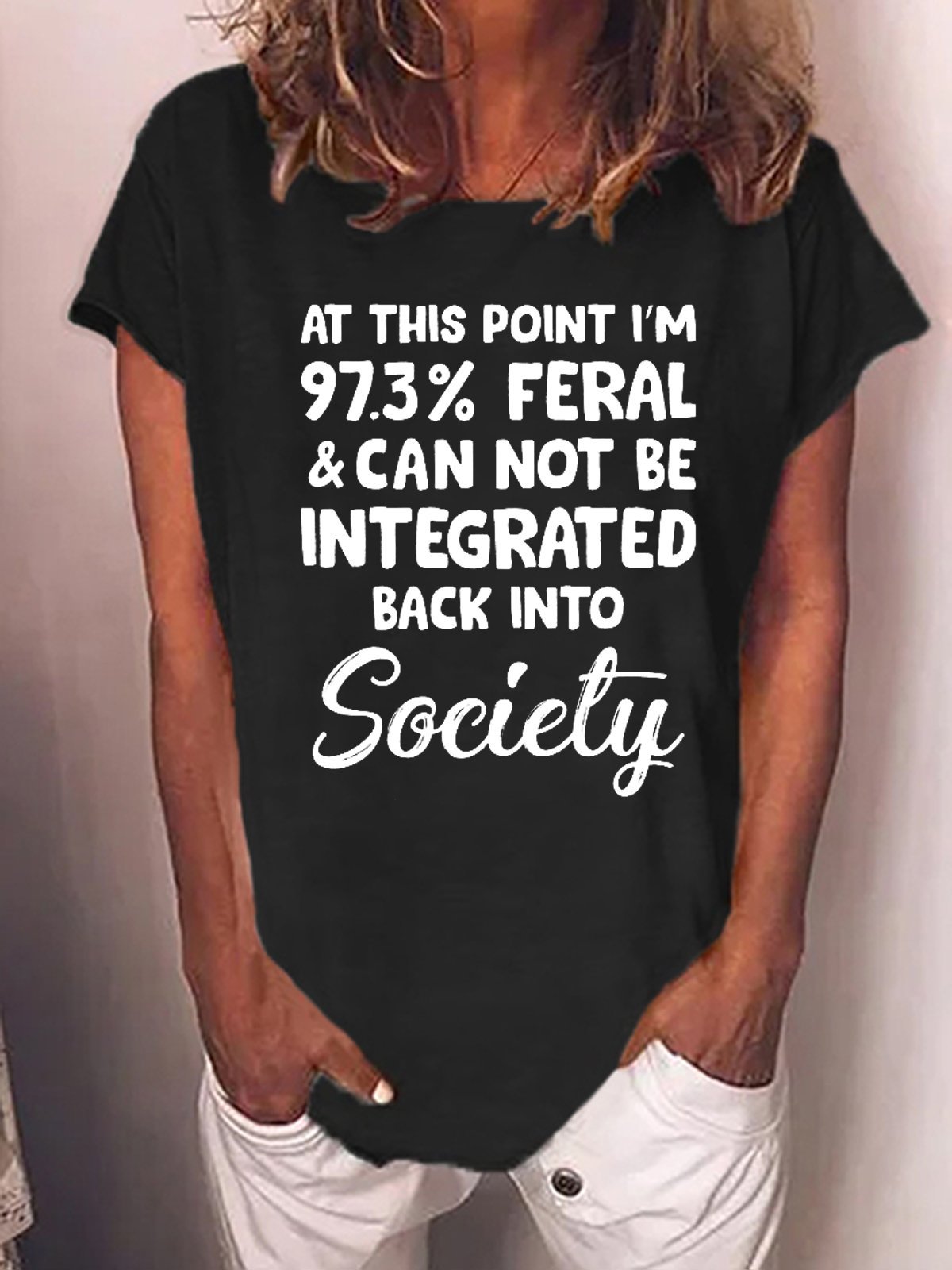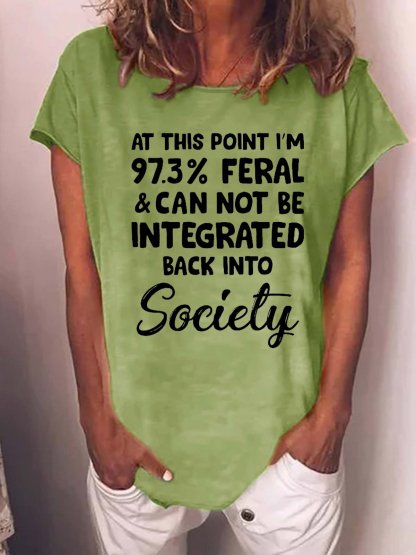 Funny I'm 97.3% Feral Crew Neck Sweet Short Sleeve T-Shirt