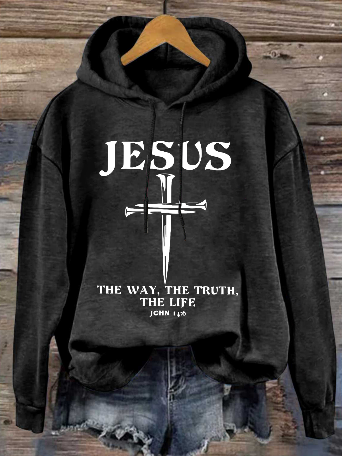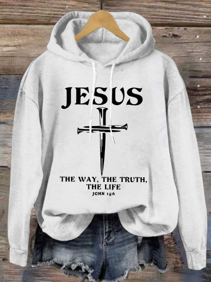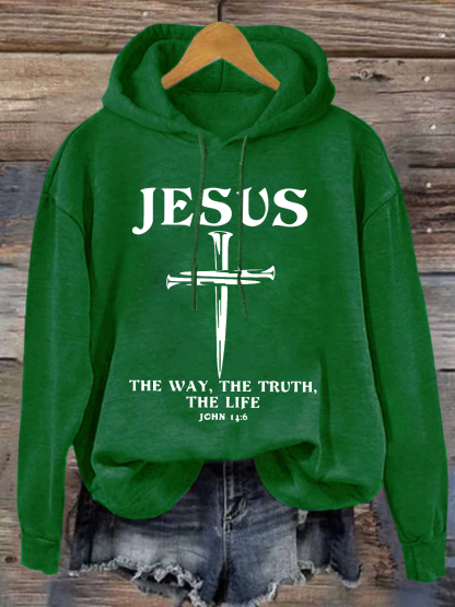 Jesus - The Way, The Truth, The Life Casual Loose Cotton-Blend Hoodie