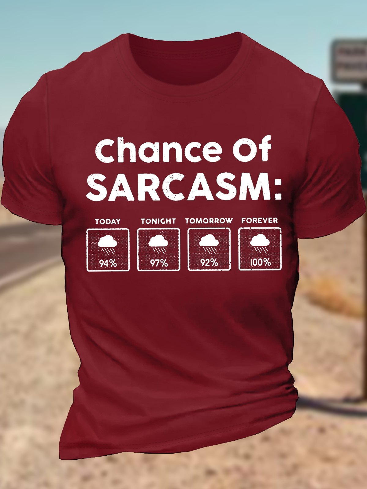 Men's Funny Chance Of Sarcasm Graphic Printing Casual Crew Neck Cotton T-Shirt