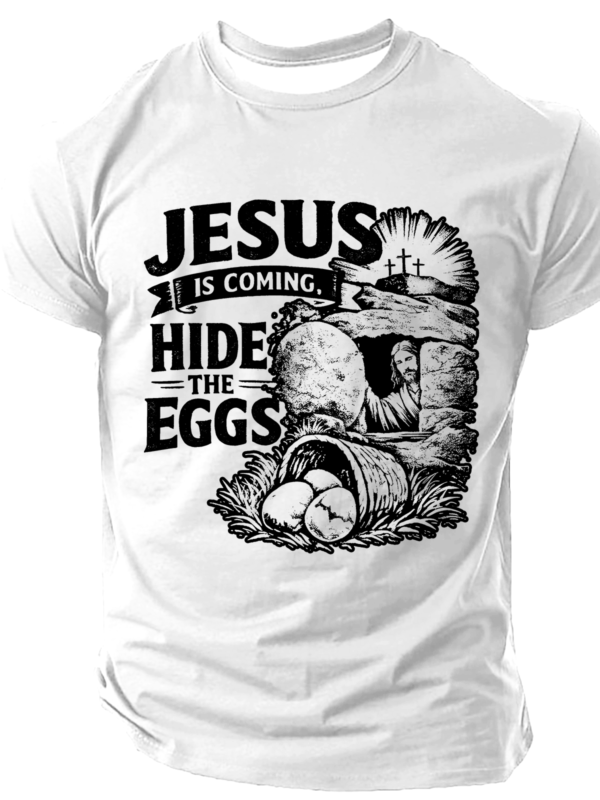 Men's Funny Easter T-Shirt Jesus is coming, hide the eggs Adult Humor Easter Shirt