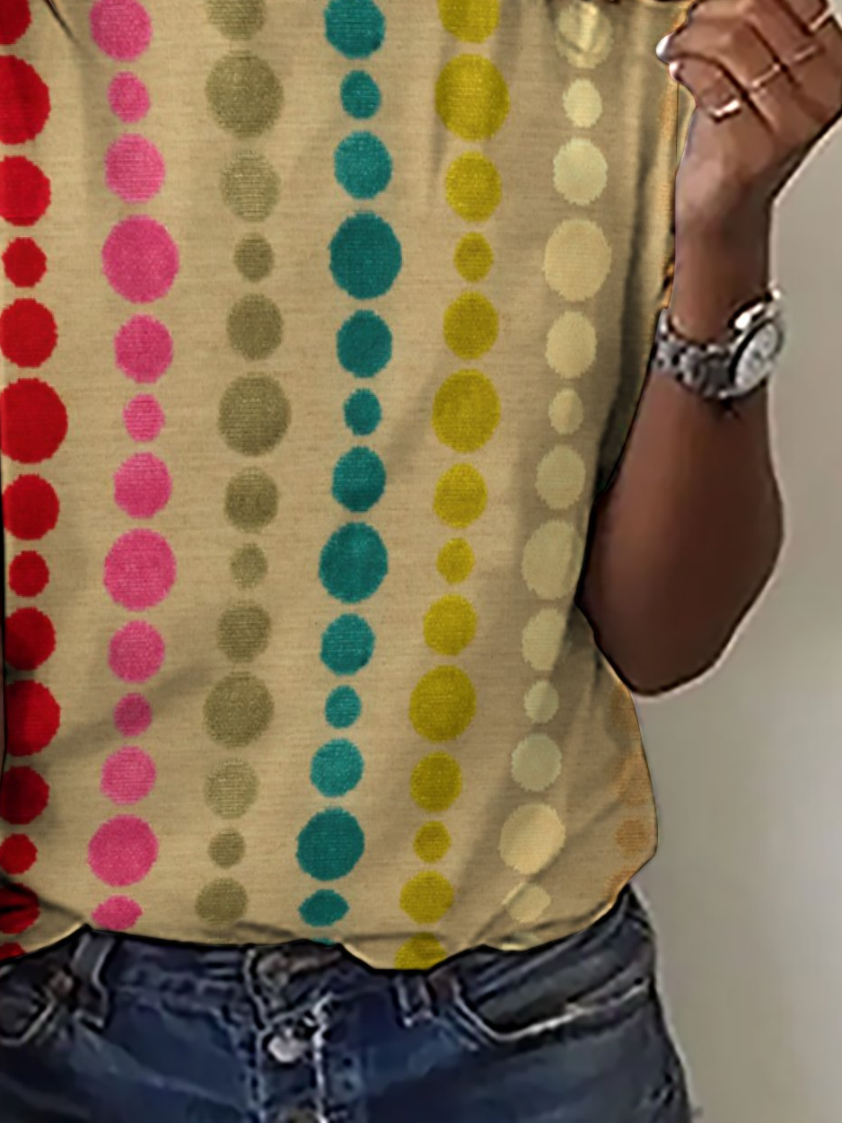 Vintage Casual Abstract Geometric Print Crew Neck T-Shirt