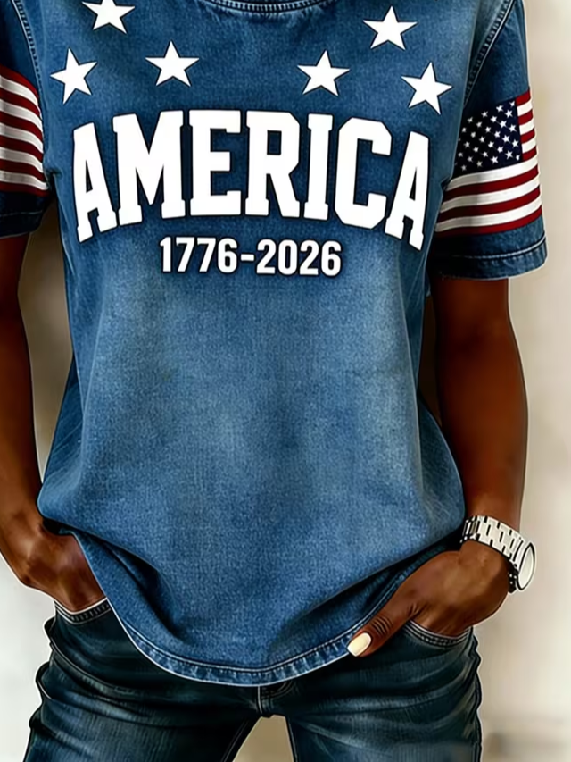 Women's Short Sleeve T-shirt Summer Blue Independence Day (Flag) Printing Jersey Crew Neck Daily Going Out Casual Top