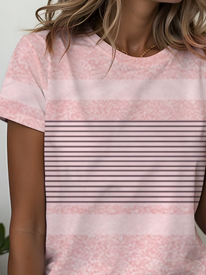 Women's Short Sleeve T-shirt Summer Pink Striped Printing Jersey Crew Neck Daily Going Out Casual Top